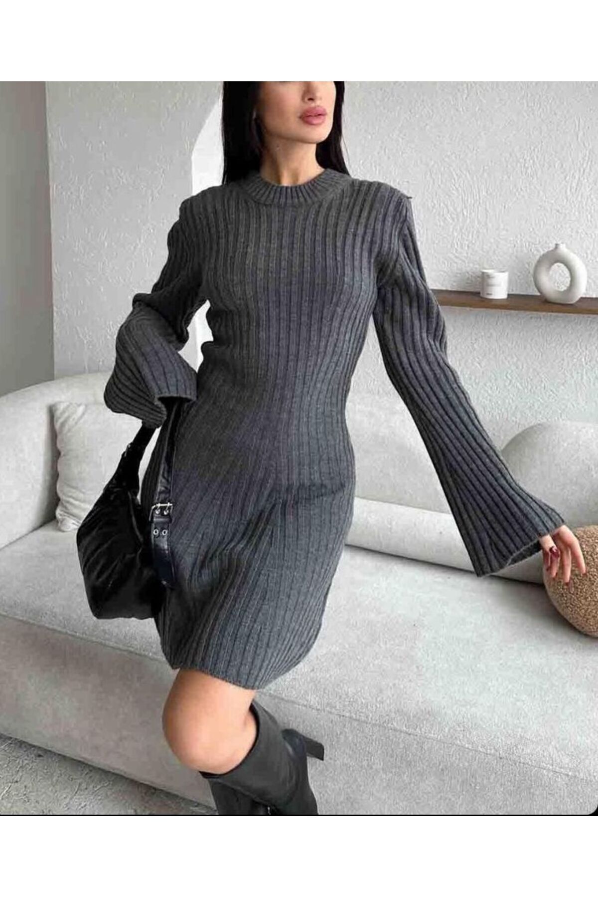 Kadın Gri Fitilli Kışlık Mini Triko Elbise 28337 Kadın Gri Fitilli Kışlık Mini Triko Elbise 28337 Standart