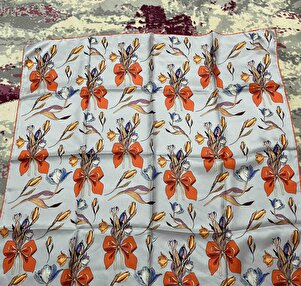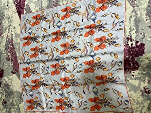 Twill İpek Eşarp - 4037-02 Mavi Turuncu Twill İpek Eşarp - 4037-02 Mavi Turuncu 90x90