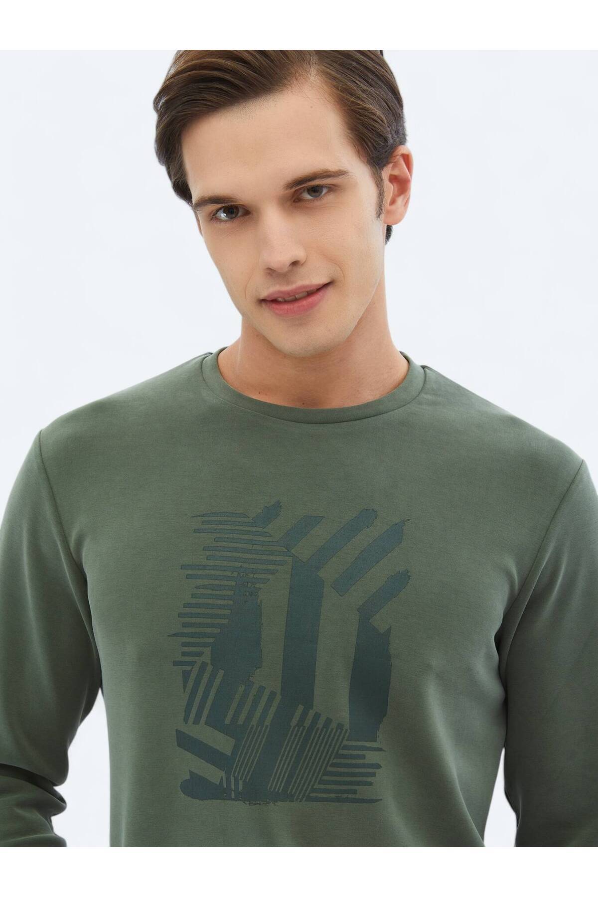 Haki Bisiklet Yaka Baskılı Sweatshırt Haki Bisiklet Yaka Baskılı Sweatshırt 49718 3XL