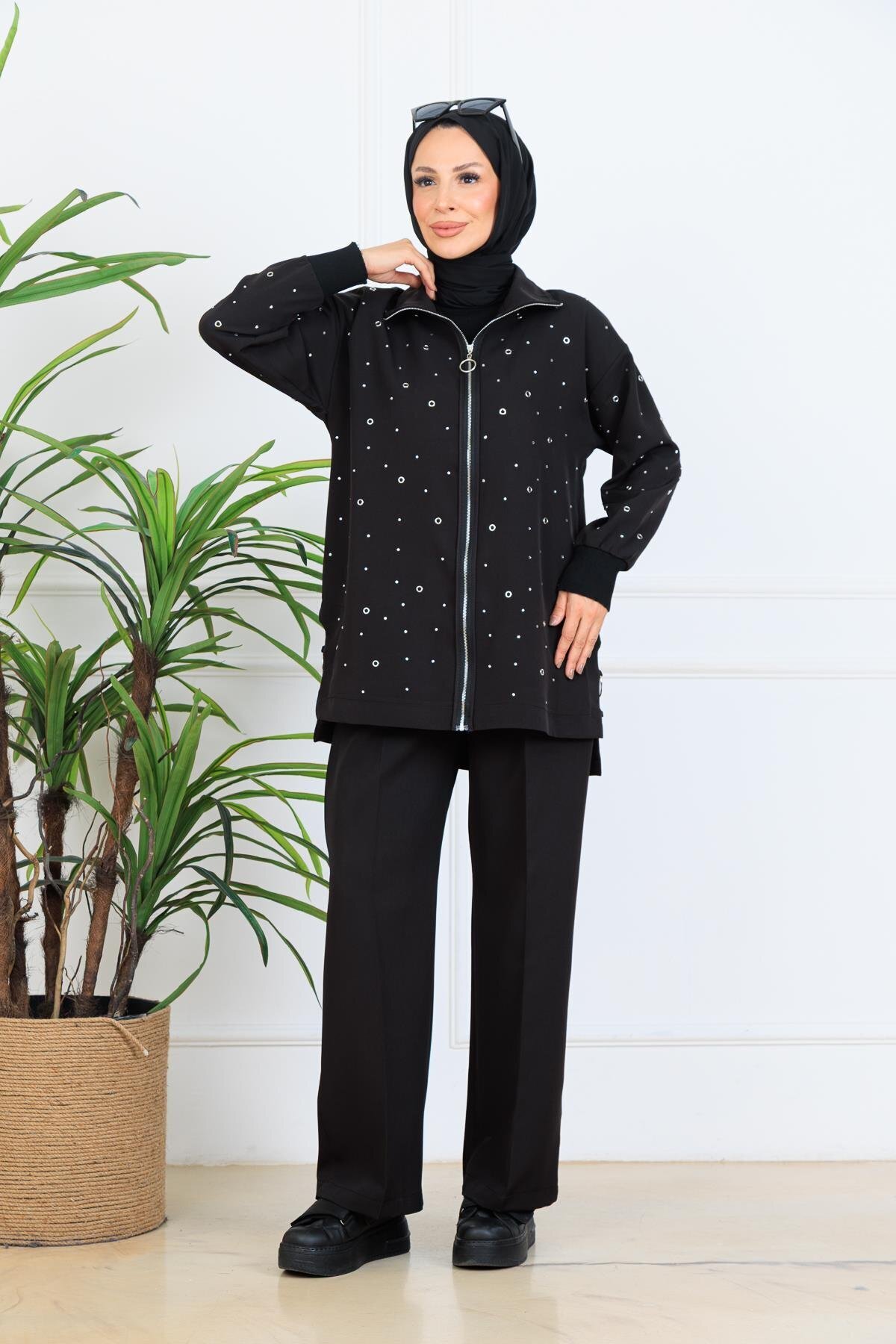 Rugan Kapitone Detaylı Takım Siyah Rugan Kapitone Detaylı Takım Siyah MM24.0255 2
