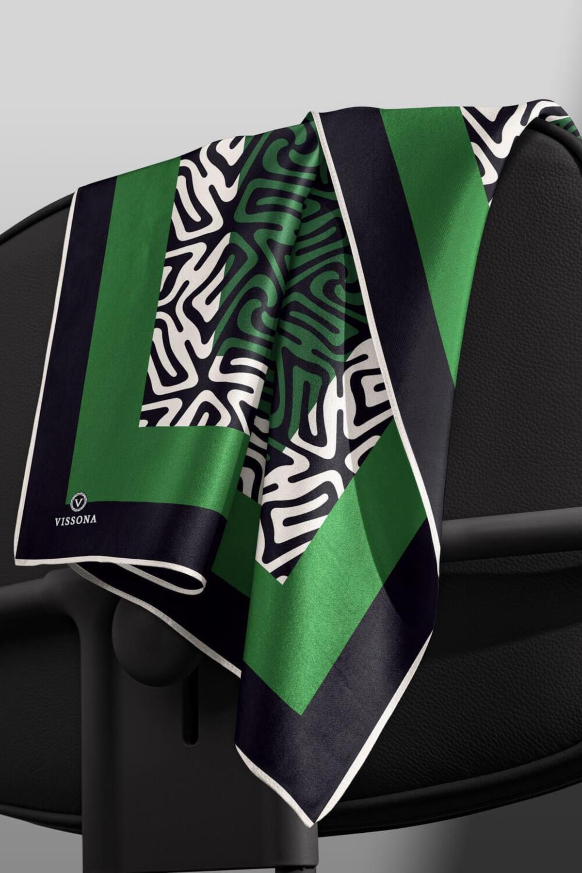 100% Twill İpek Bordürlü Dalga Desenli Siyah - Zümrüt Yeşili Renkli 90x90 Dikim Şekli : El Dikişi Eş 100% Twill İpek Bordürlü Dalga Desenli Siyah - Zümrüt Yeşili Renkli 90x90 Dikim Şekli : El Dikişi Eş DGN51373-9 90x90