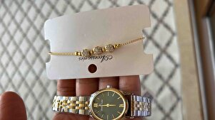 Kadranı Yeşil Kordonu Gold Gümüş Renk Kadın Kol Saati ve Bileklik Kadranı Yeşil Kordonu Gold Gümüş Renk Kadın Kol Saati ve Bileklik DKISTEII387O تک سایز