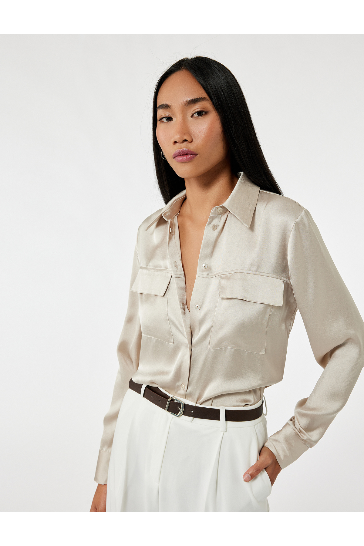 Klasik Yaka Düğmeli Uzun Kollu Saten Gömlek Klasik Yaka Düğmeli Uzun Kollu Saten Gömlek 5SAK60010UW 48