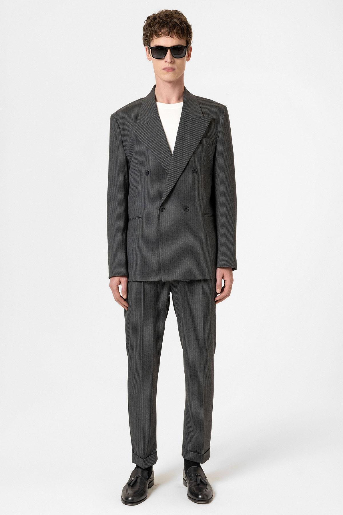 Antrasit Rahat Kruvaze Çizgili Erkek Blazer Ceket Antrasit Rahat Kruvaze Çizgili Erkek Blazer Ceket A24Y4175 XL