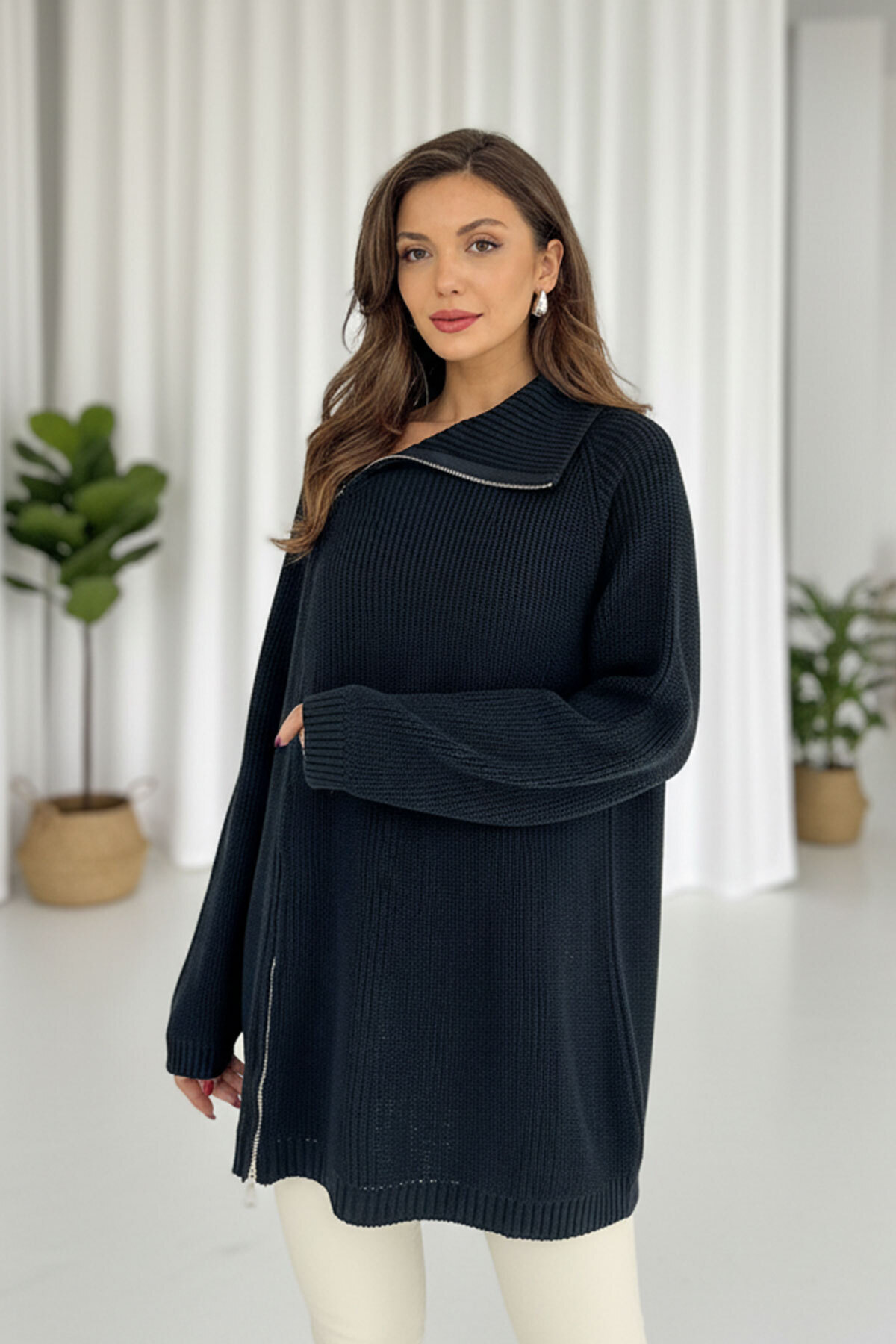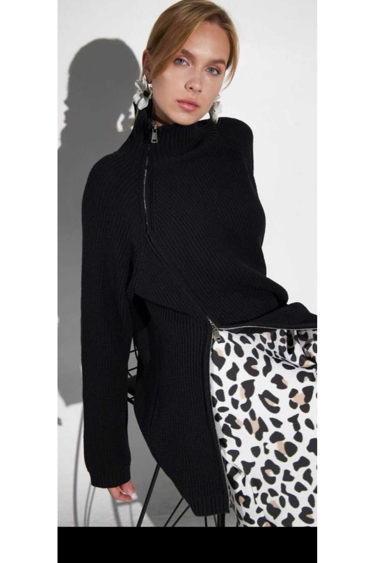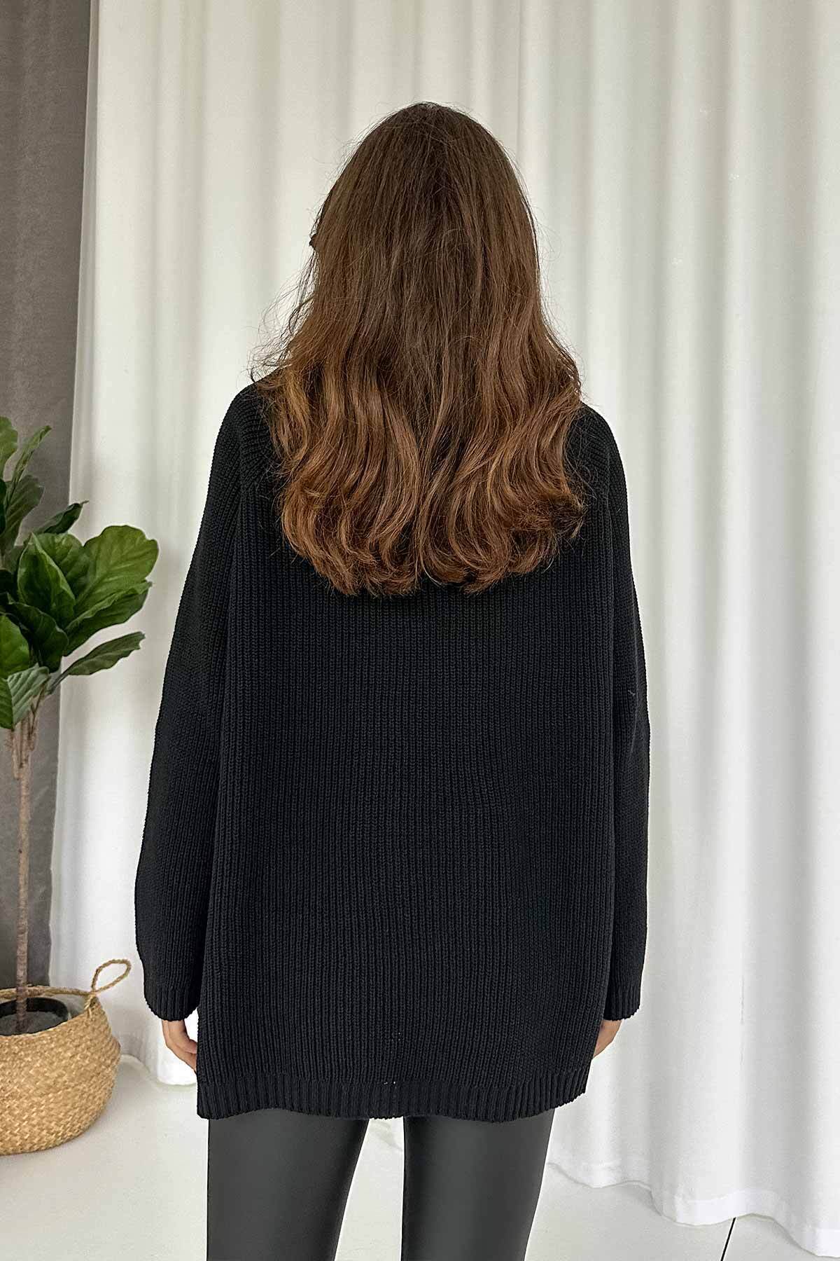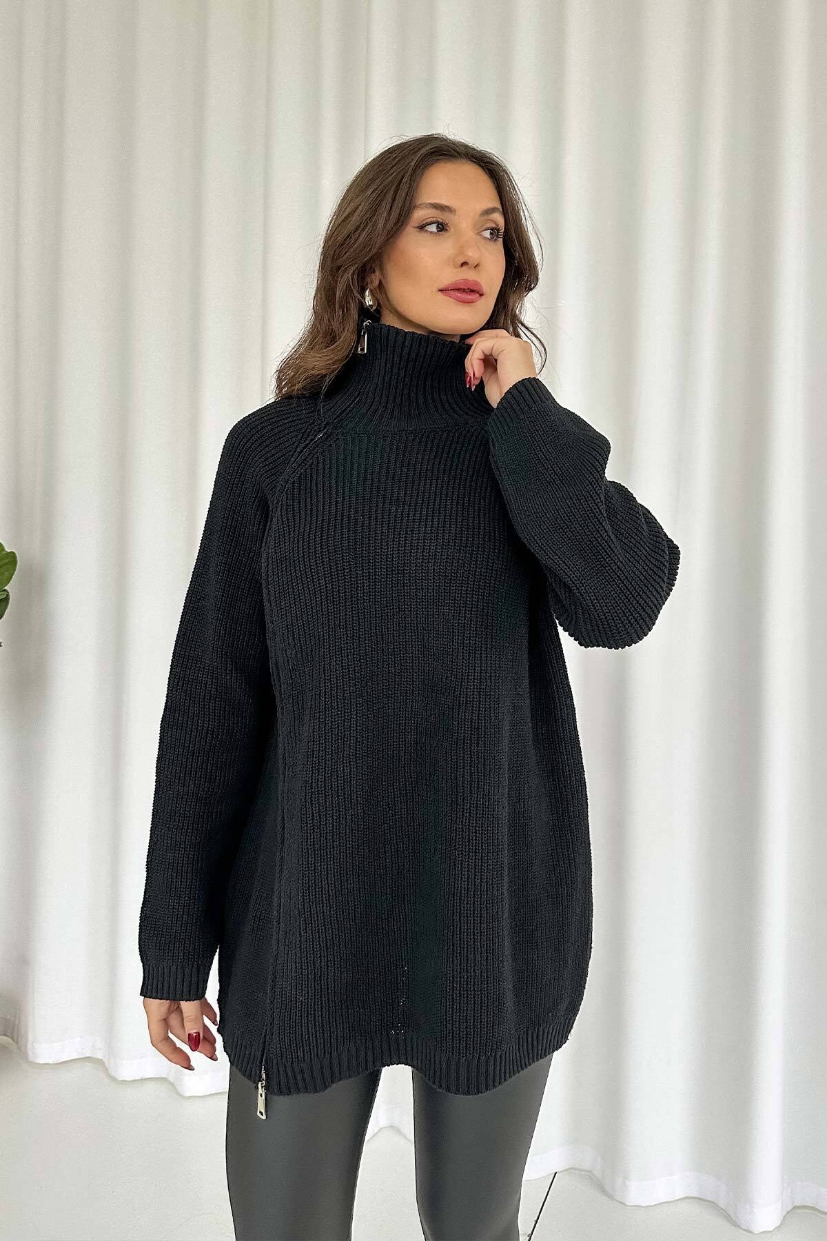Fermuar Detay Tunik Triko - Siyah Fermuar Detay Tunik Triko - Siyah 3M-3321 Standart