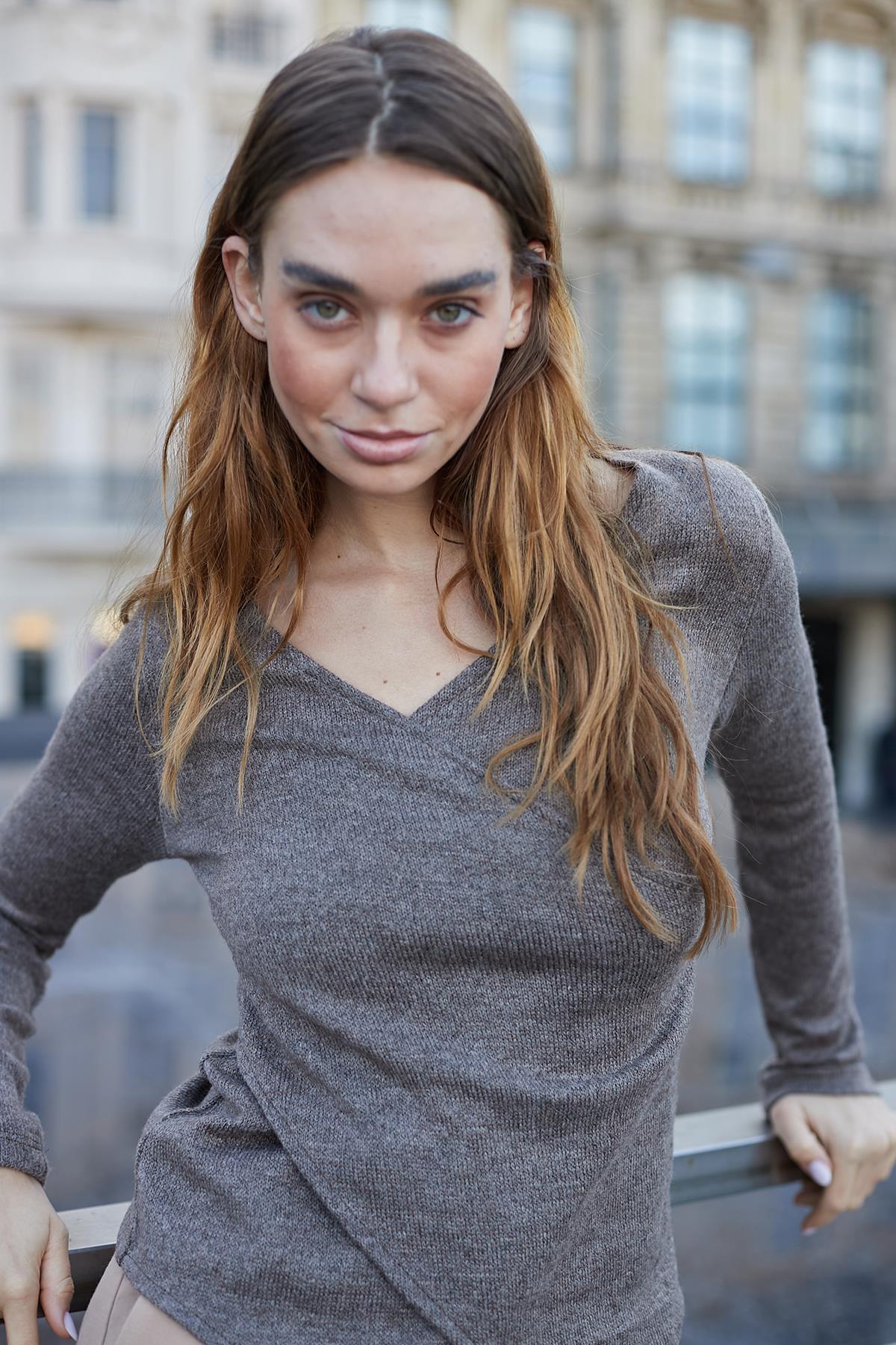 Kadın Kruvaze Uzun Kol Hafif Esnek Triko Kazak Bluz-Vizon Kadın Kruvaze Uzun Kol Hafif Esnek Triko Kazak Bluz-Vizon 20513 XL