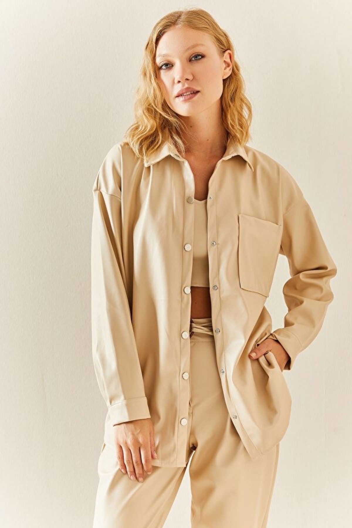 Oversize Deri Gömlek Oversize Deri Gömlek GUGML0006 L