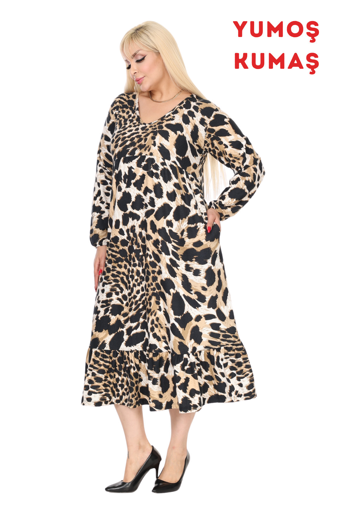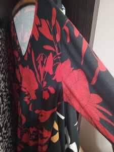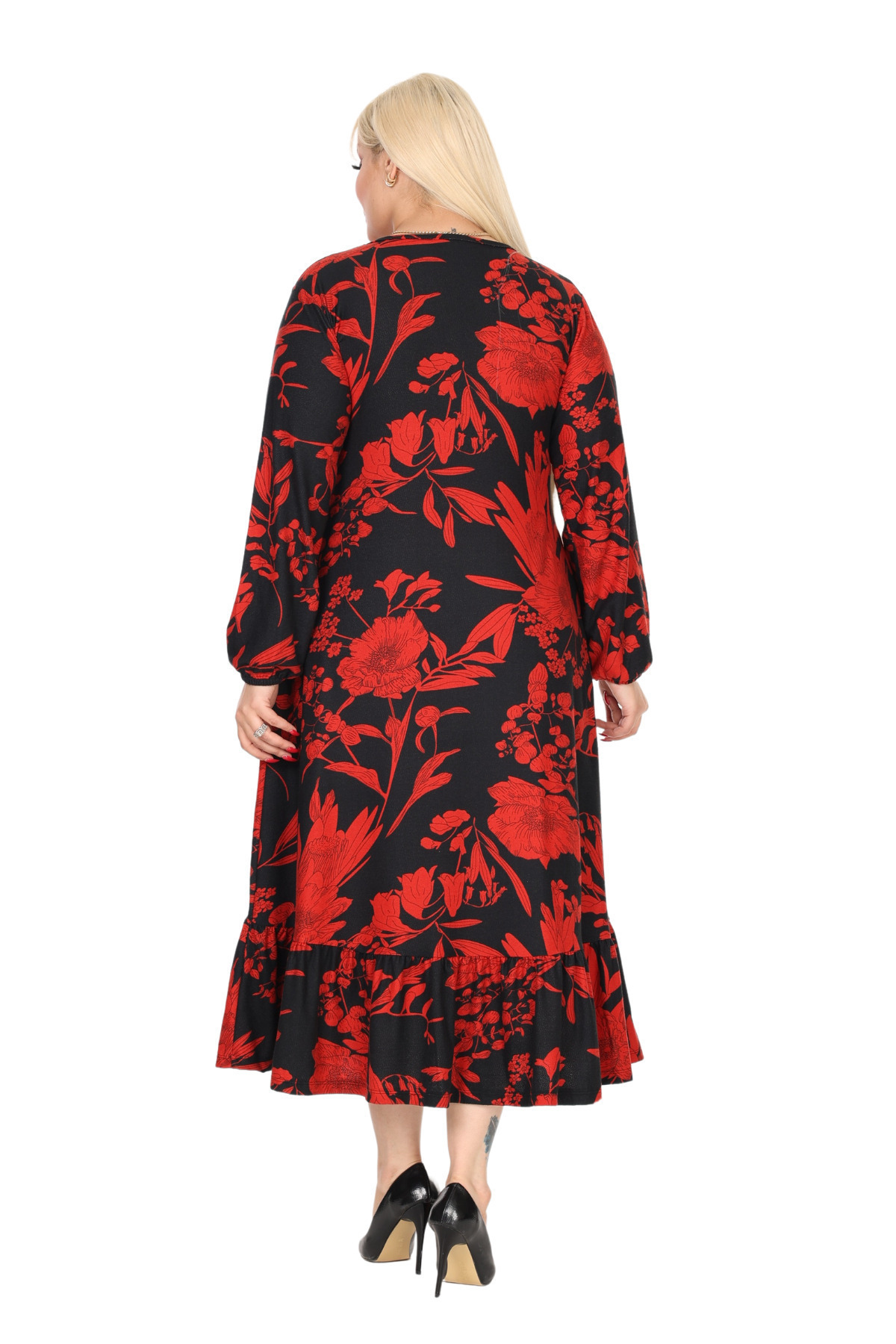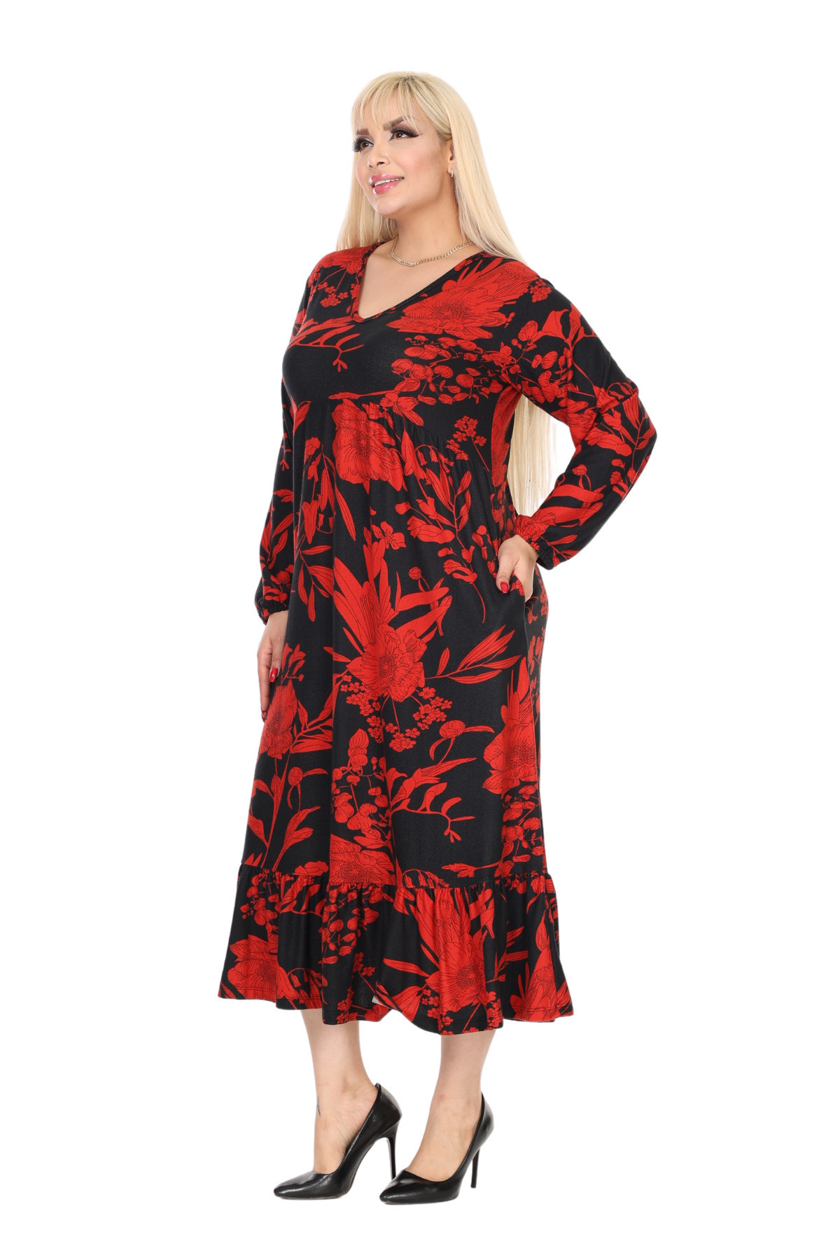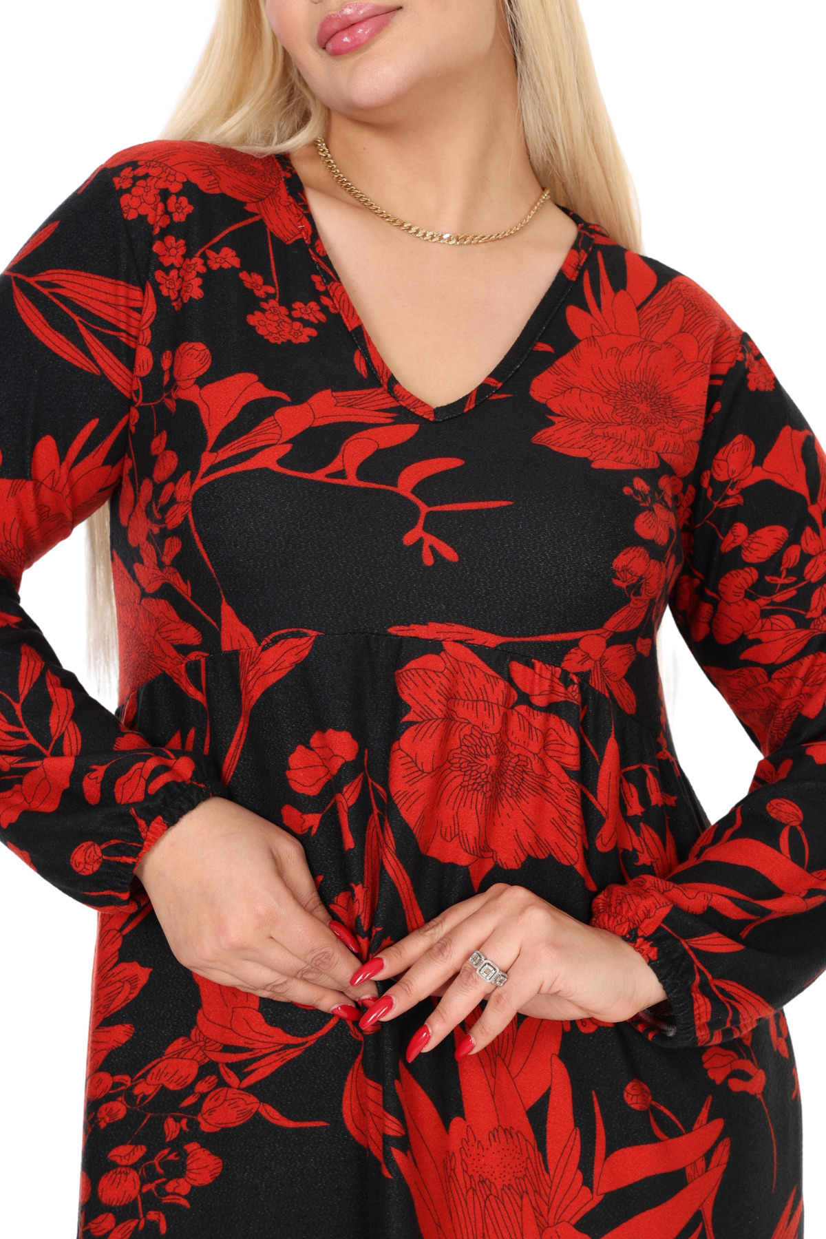 Kadın Siyah Kışlık V Yaka Kırmızı Yaprak Desen Robalı Elbise Kadın Siyah Kışlık V Yaka Kırmızı Yaprak Desen Robalı Elbise YM-RB-UZ-TRP 50-52