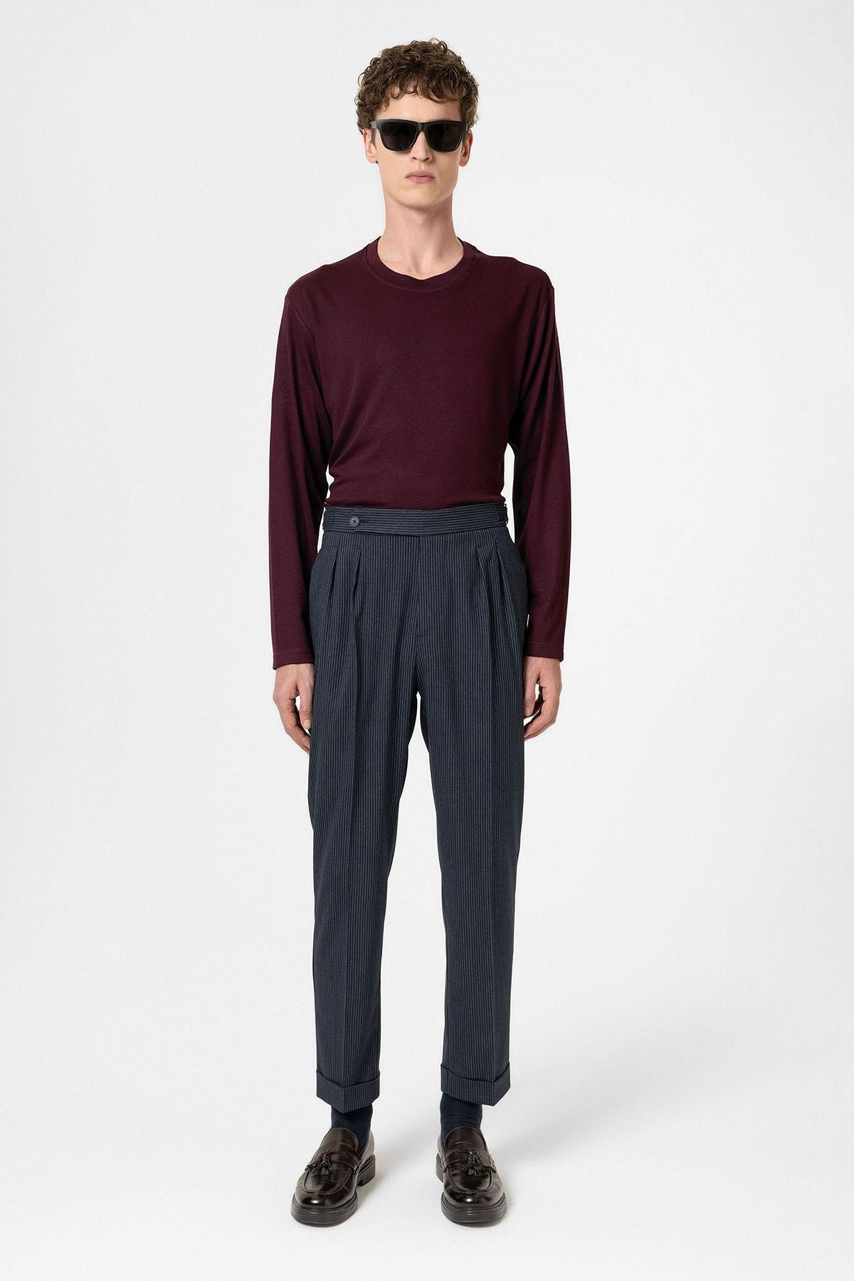 Lacivert Yüksek Bel Çizgili Duble Paça Erkek Pantolon Lacivert Yüksek Bel Çizgili Duble Paça Erkek Pantolon A24Y2782 XL