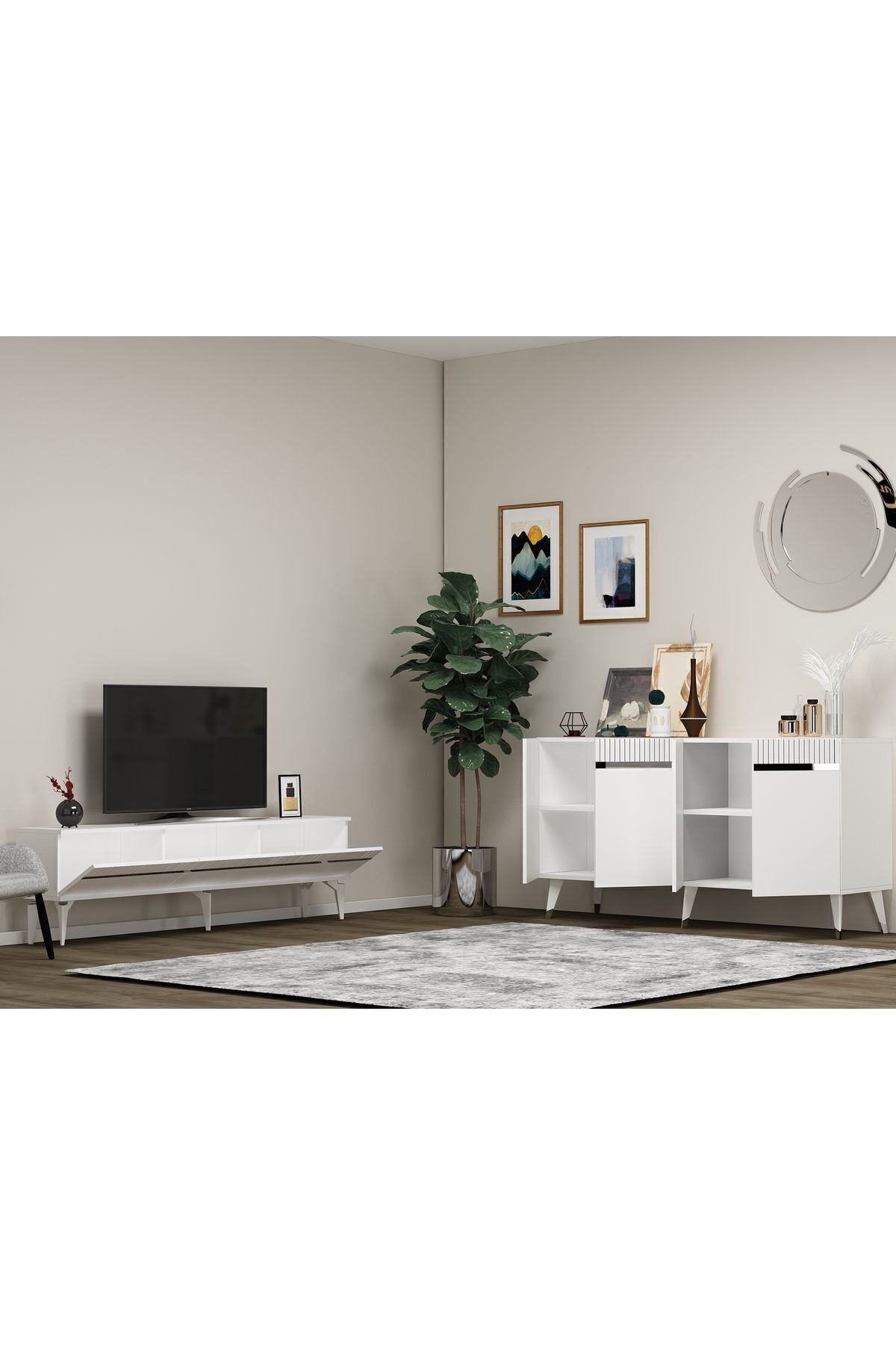 DEFFNE TV SEHPASI ve KONSOL 2'Lİ SALON TAKIMI BEYAZ-GÜMÜŞ DEFFNE TV SEHPASI ve KONSOL 2'Lİ SALON TAKIMI BEYAZ-GÜMÜŞ TYBSTKM9032140412416 تک سایز