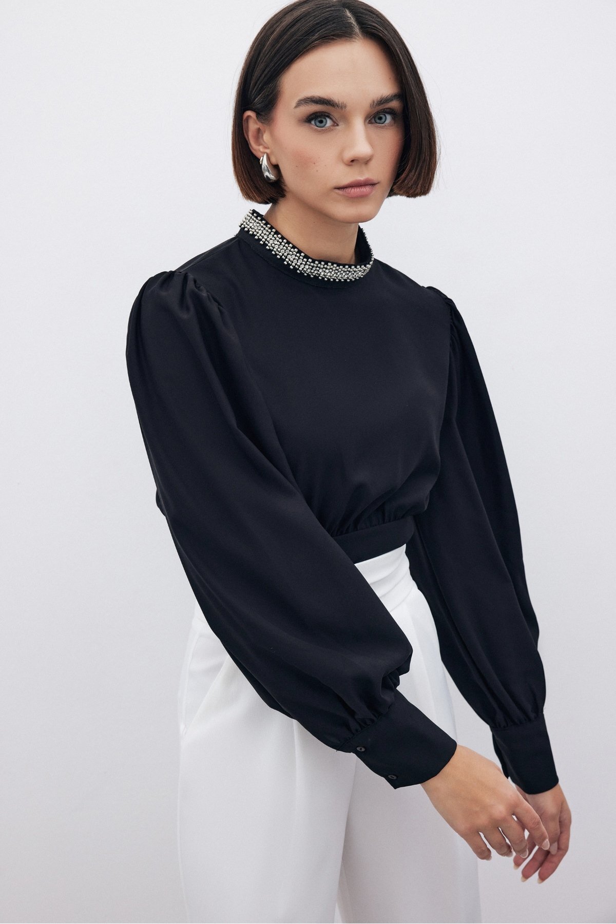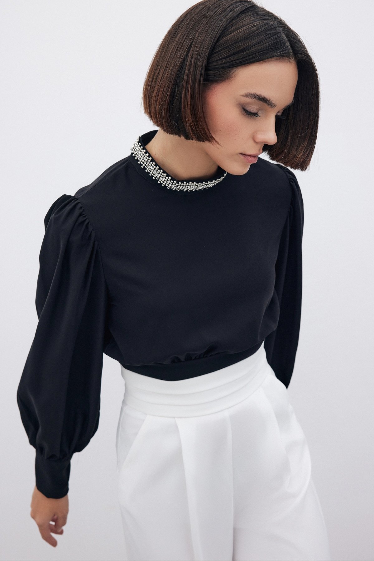 Yaka Aksesuarlı Bluz - SİYAH Yaka Aksesuarlı Bluz - SİYAH STN139KBL1539 42
