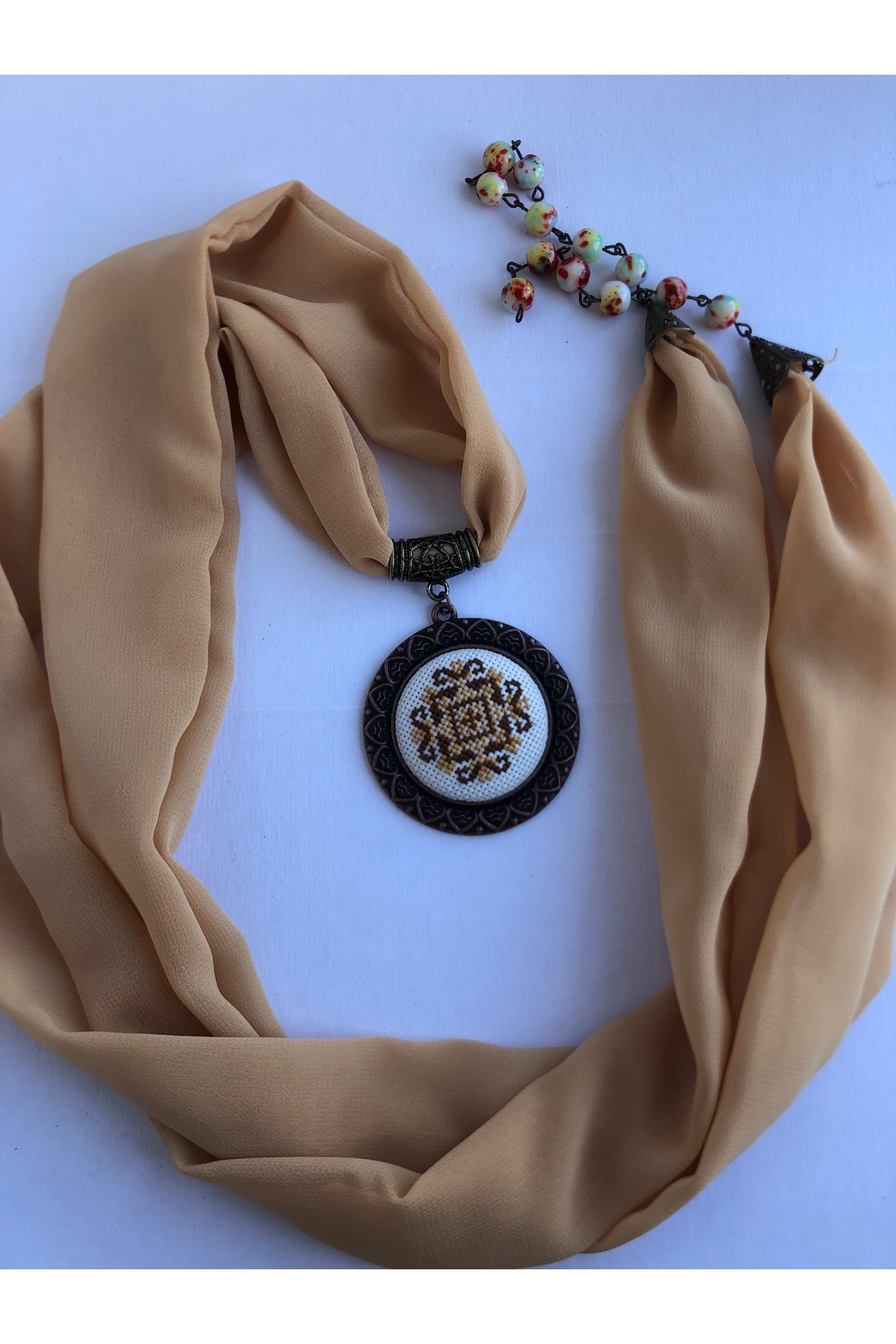 Kanaviçe işlemeli yöresel motifli fular kolye Kanaviçe işlemeli yöresel motifli fular kolye KİYMFK-43 L