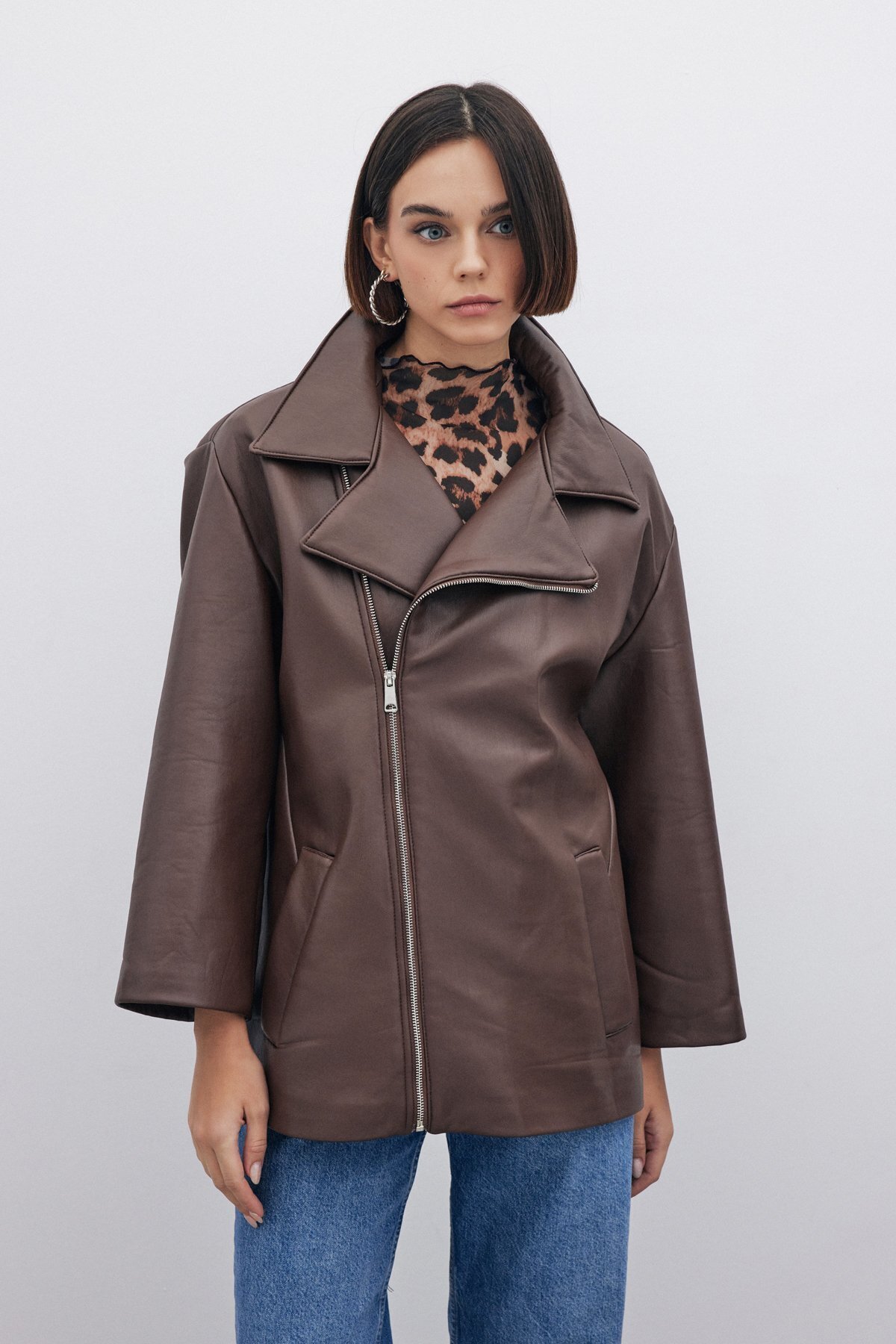 Oversize Deri Ceket - Kahve Oversize Deri Ceket - Kahve STN138KCE107 40