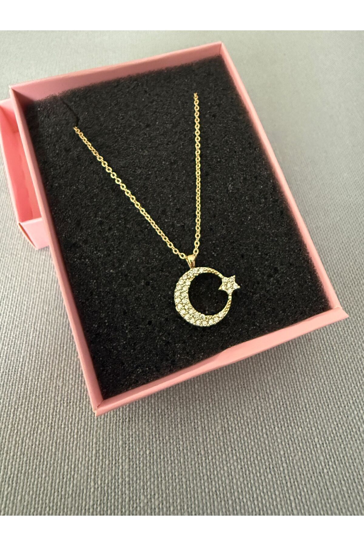 925 Ayar Gümüş Altın Kaplama Ay Yıldız Kolye 925 Ayar Gümüş Altın Kaplama Ay Yıldız Kolye UVPS101195 تک سایز