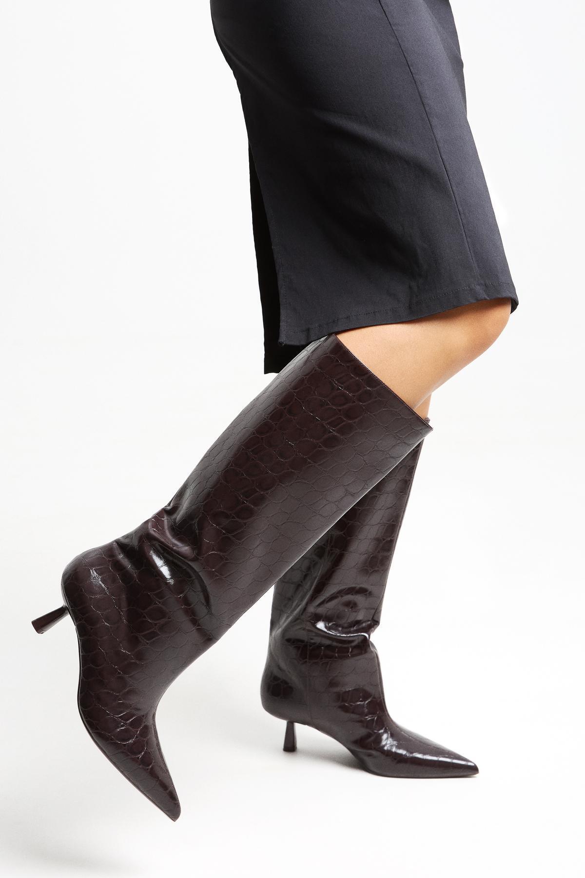 Kroko Çizme, Siyah Croco Timsah Derisi Sivri Burunlu Kısa Topuklu Kadın Çizme, Kroko Çizme, Siyah Croco Timsah Derisi Sivri Burunlu Kısa Topuklu Kadın Çizme, Bot ve Çizme Kadın Çizme 40