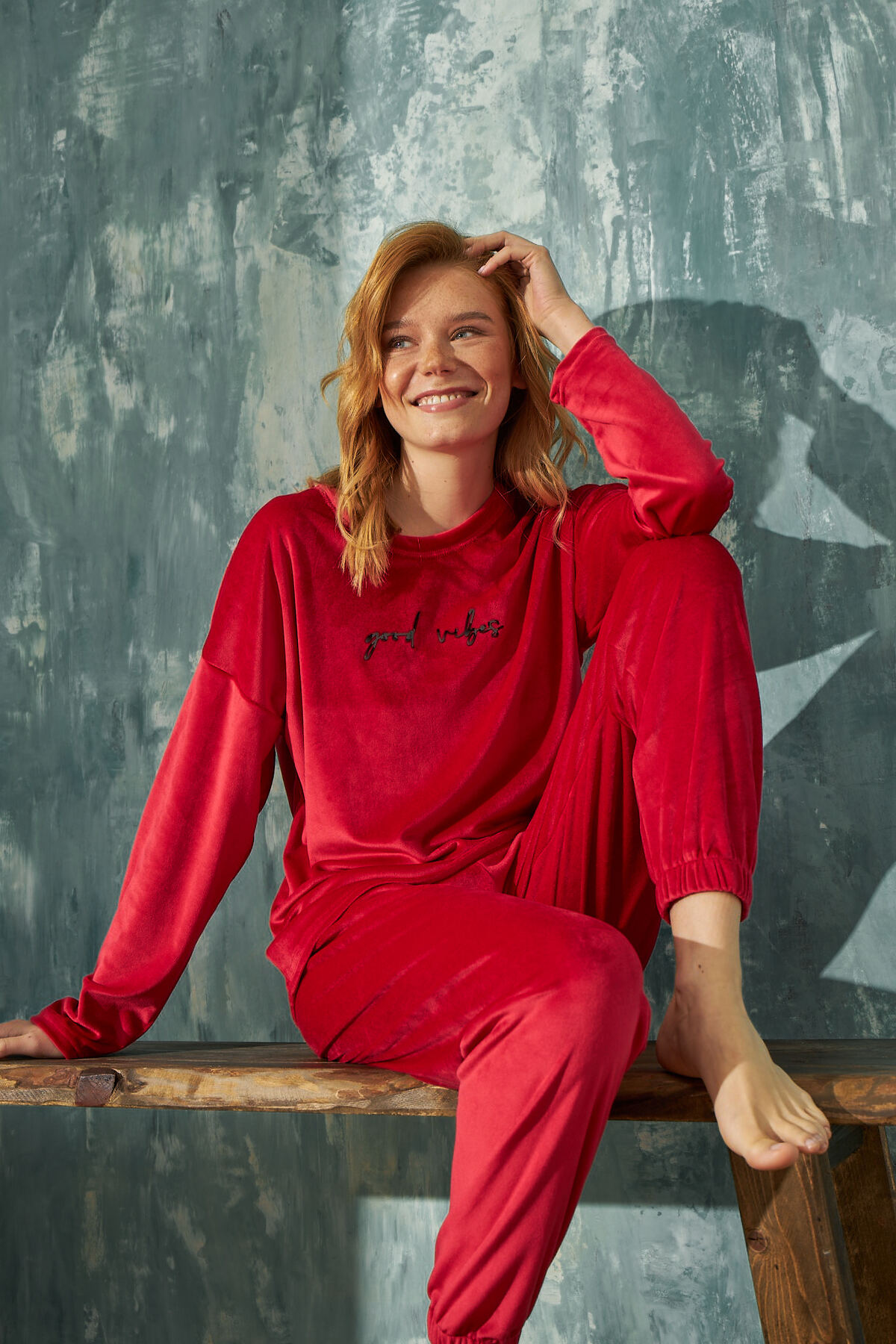 Kadın Pijama Takımı Uzun Kollu Soft Fransız Kadife Kışlık Kadın Pijama Takımı Uzun Kollu Soft Fransız Kadife Kışlık CN65131 2XL