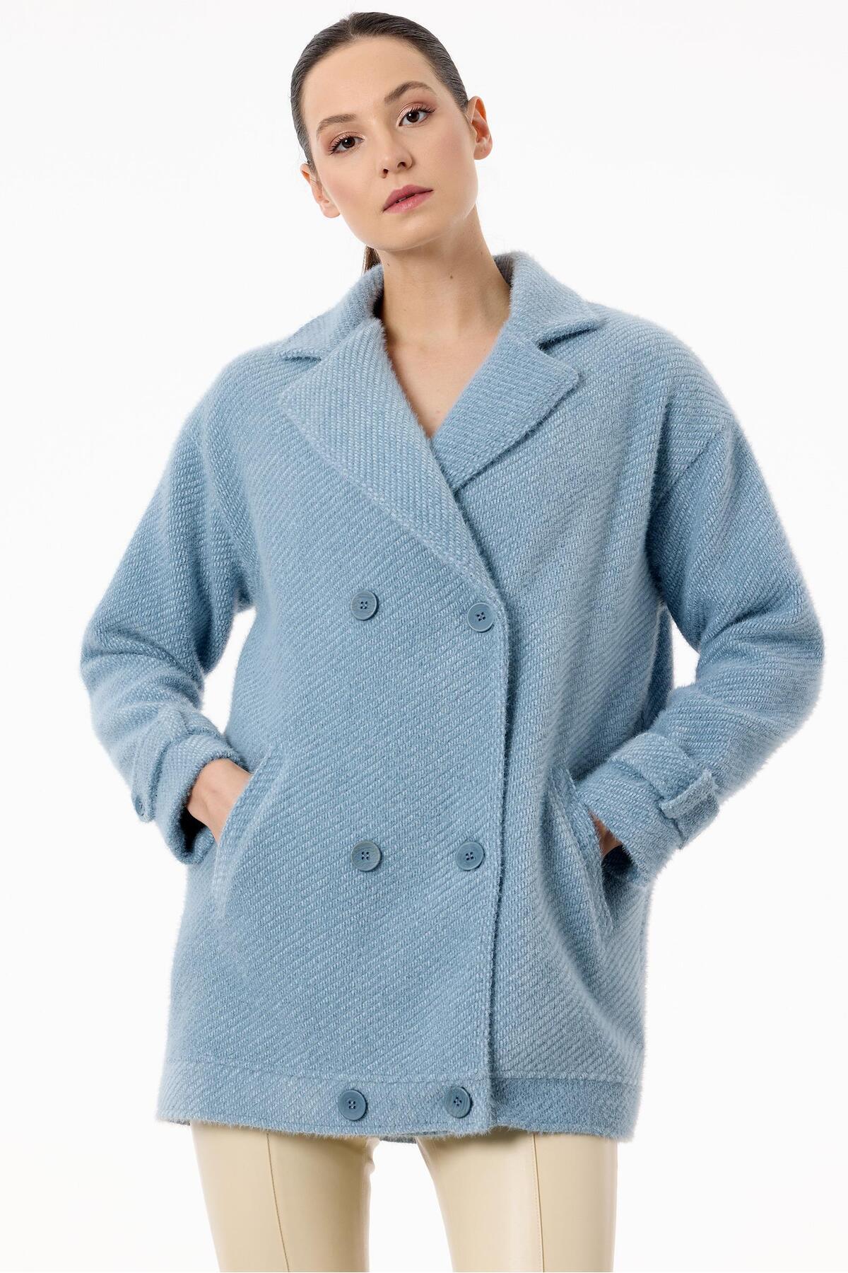 Dokulu Çiçek Broşlu Kruvaze Kaban Dokulu Çiçek Broşlu Kruvaze Kaban A0923K900910001 42