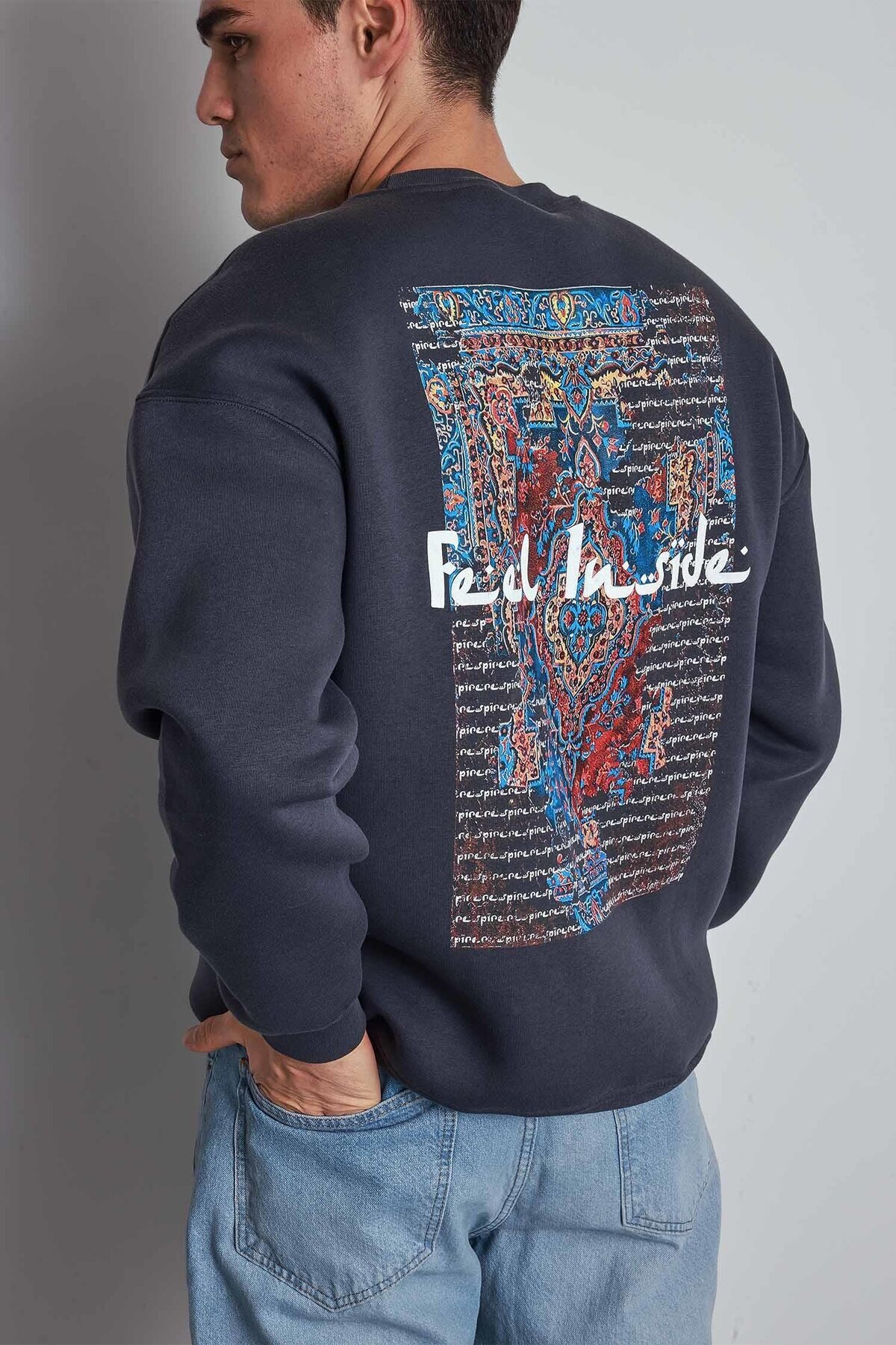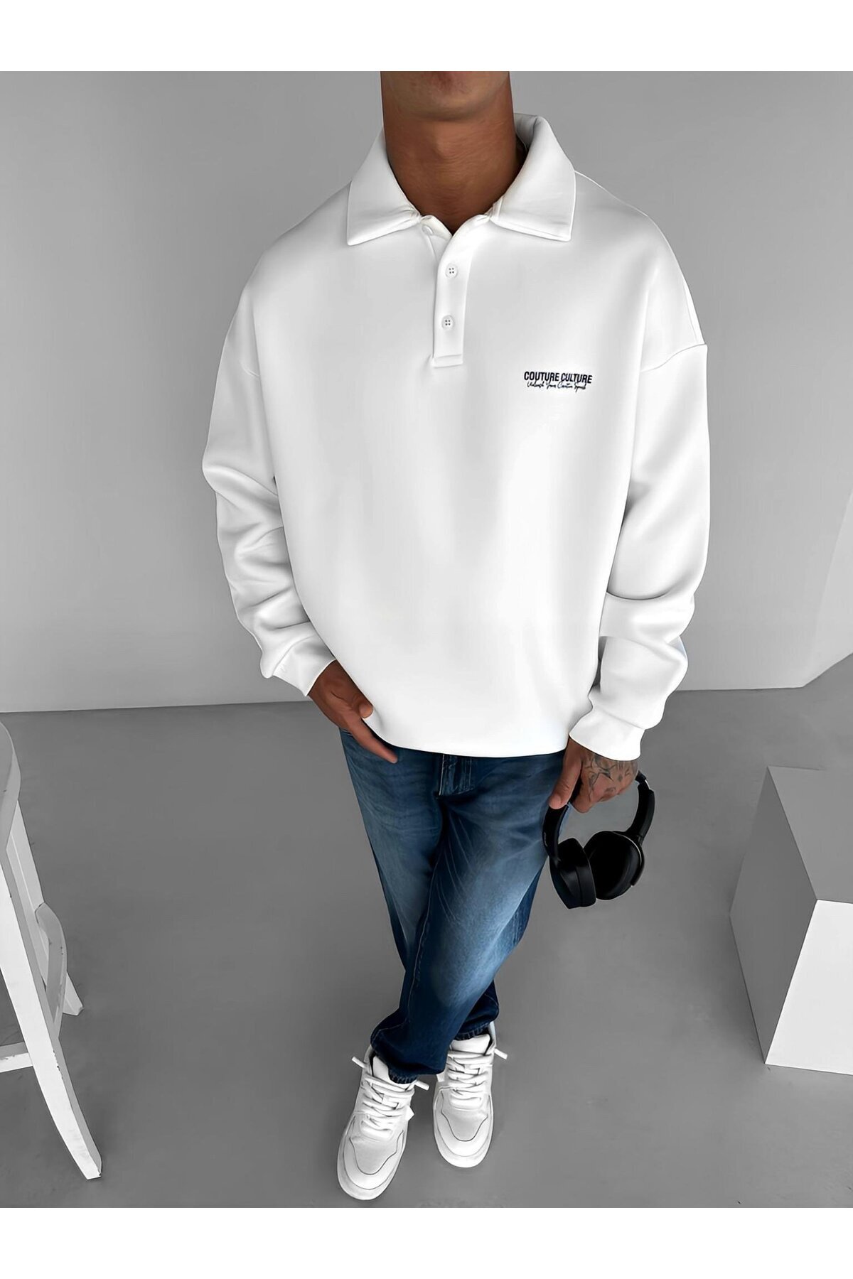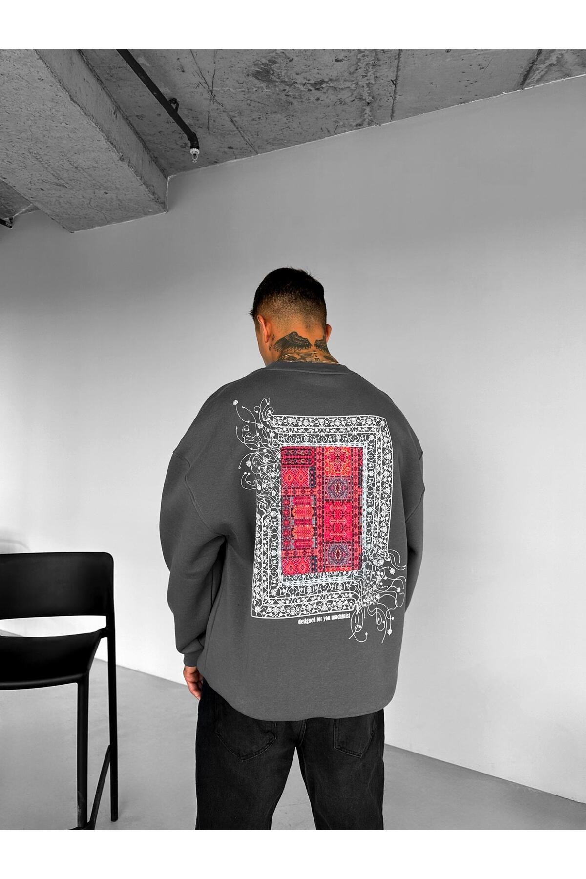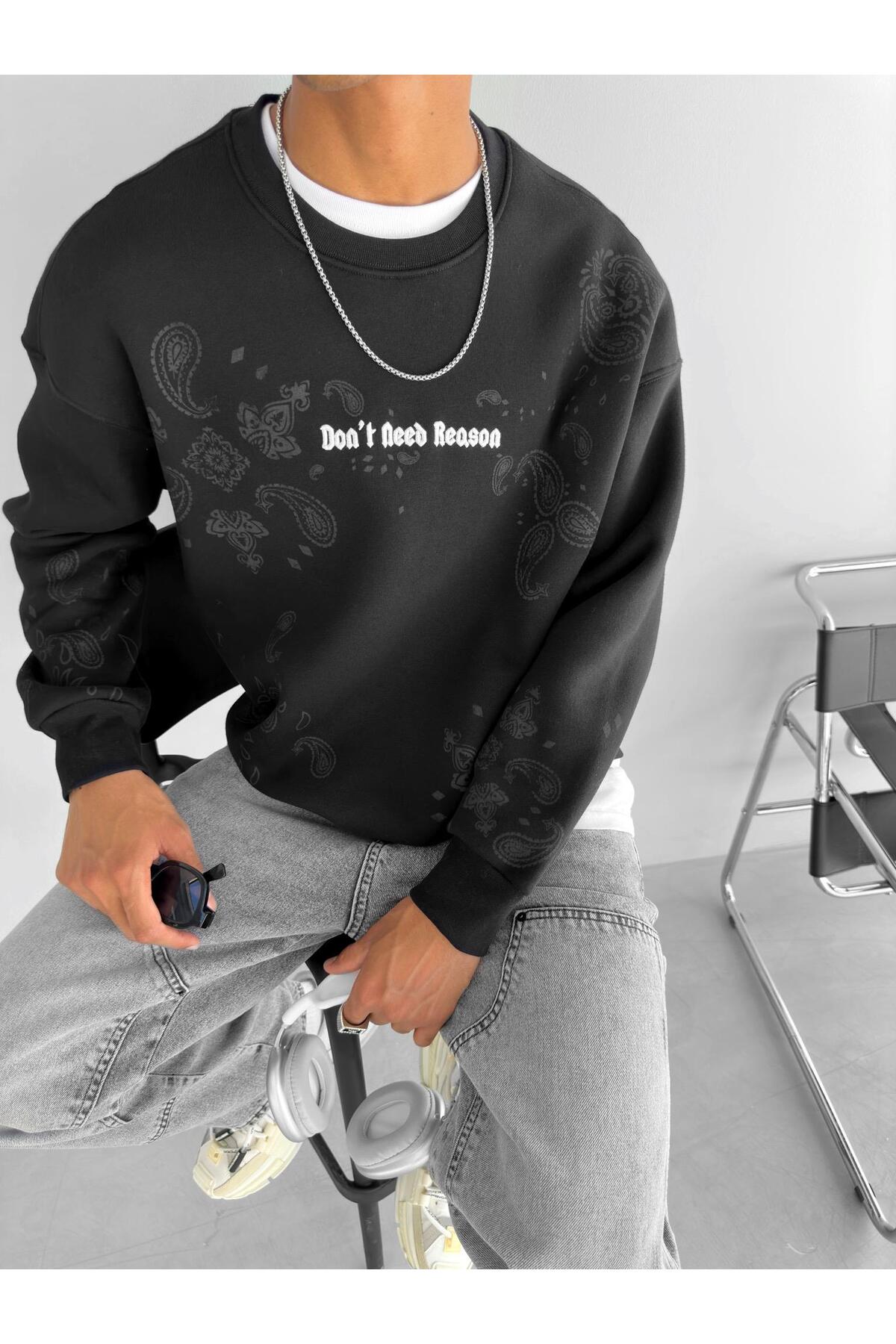 Erkek Oversize Desen Yamalı Sweatshirt Siyah Erkek Oversize Desen Yamalı Sweatshirt Siyah SWT.0088 XL