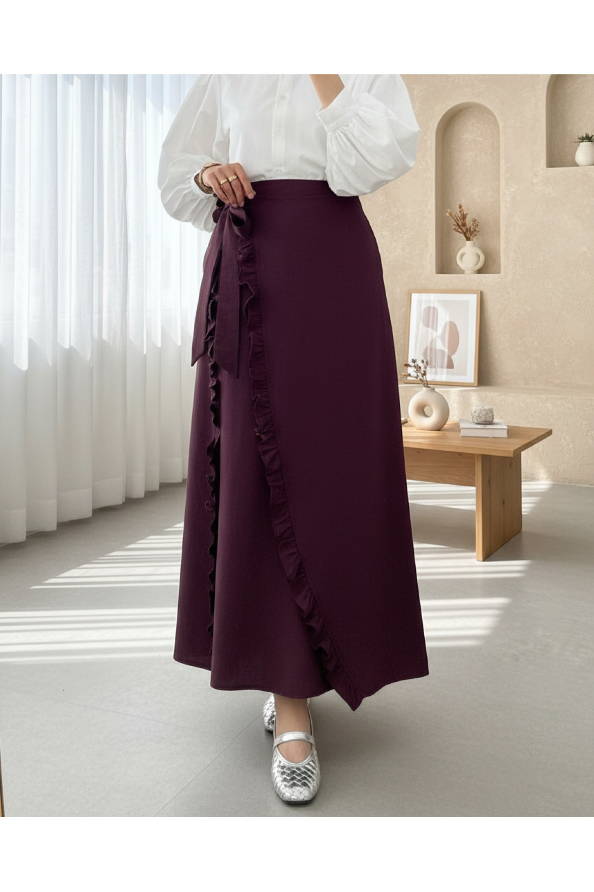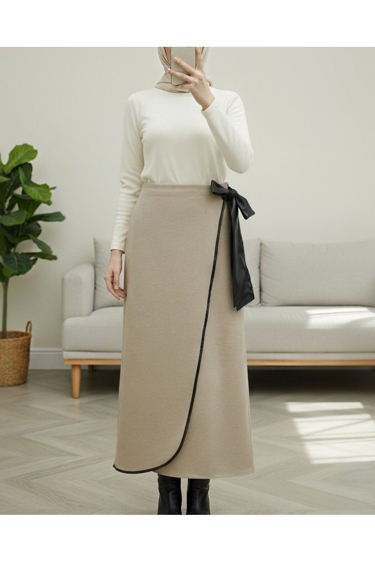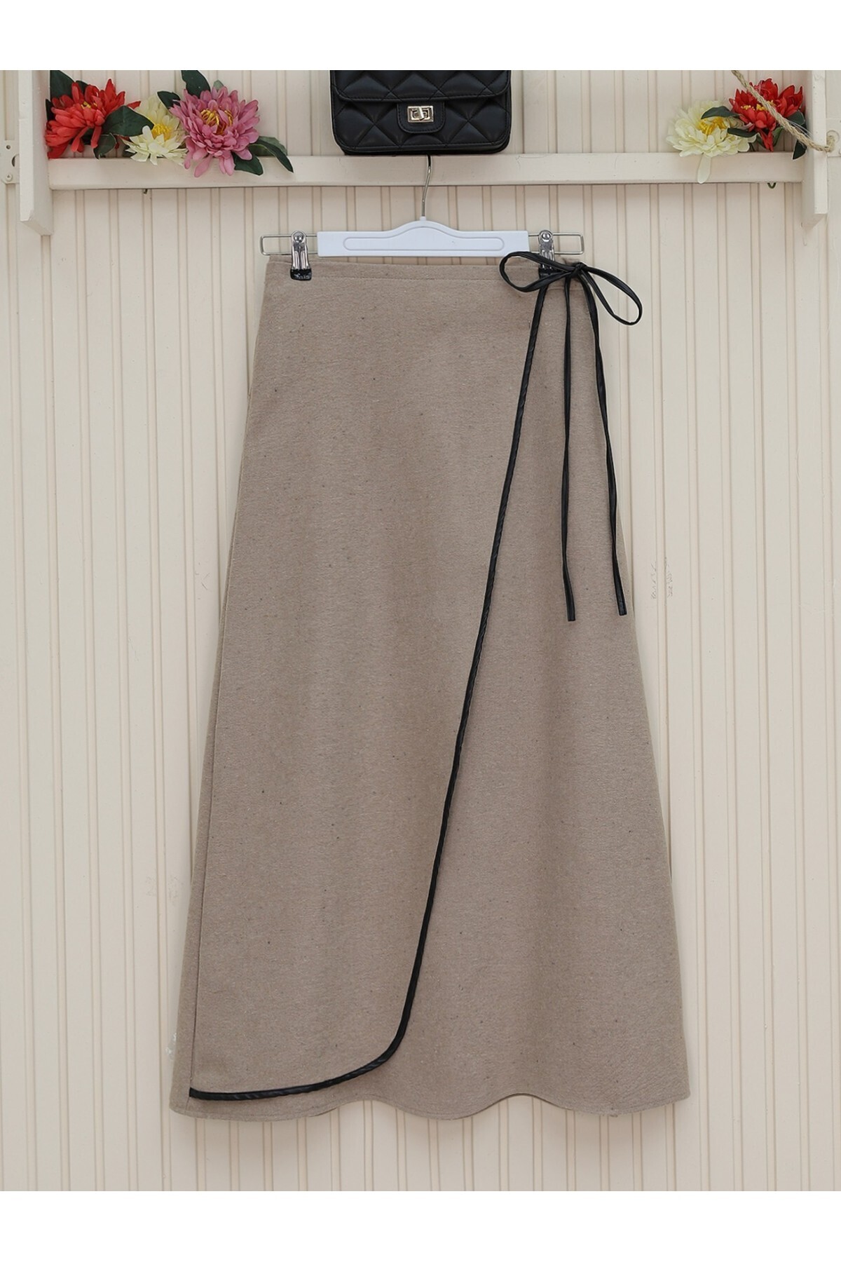 Beli Lastikli Bağlamalı Biyeli Kaşe Etek -Laci Beli Lastikli Bağlamalı Biyeli Kaşe Etek -Laci TY346-3048 42