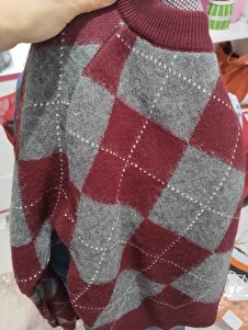 Bordo Gri Baklava Desenli Bisiklet Yaka Kazak Bordo Gri Baklava Desenli Bisiklet Yaka Kazak KZK1001 تک سایز