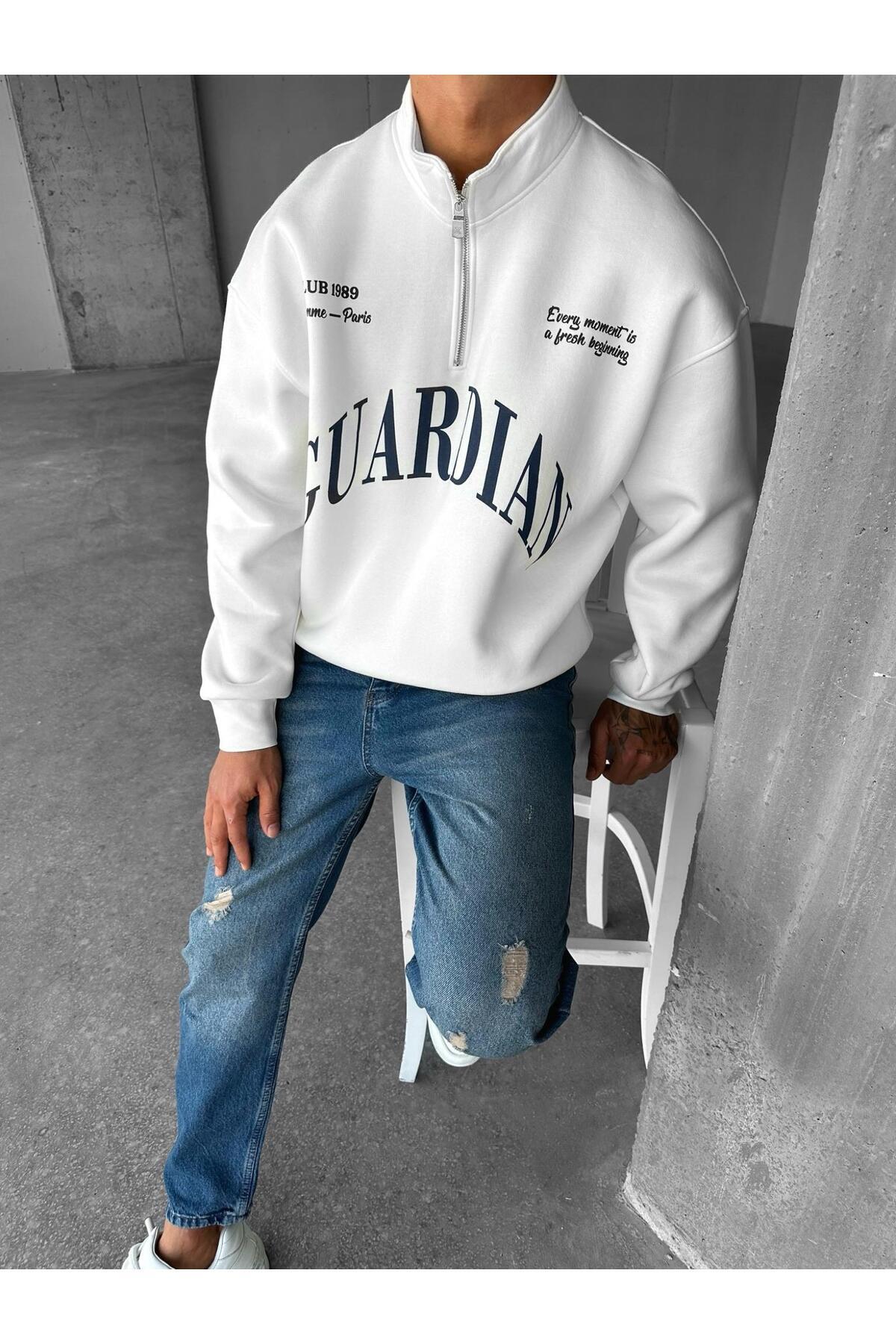 Erkek Oversize Yarım Fermuarlı Dik Yakalı Baskılı Sweatshirt Ekru Erkek Oversize Yarım Fermuarlı Dik Yakalı Baskılı Sweatshirt Ekru SWT.0085 XL