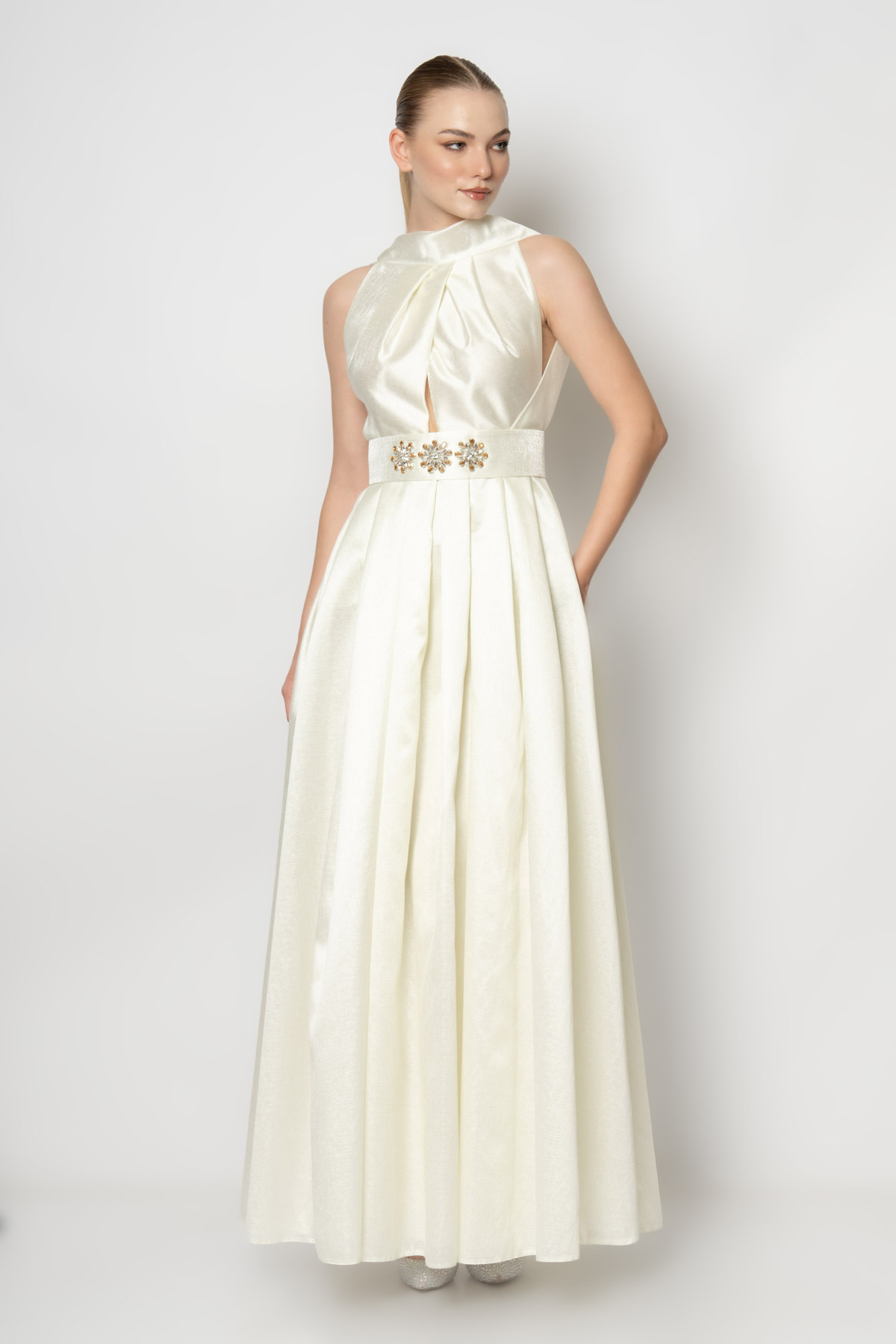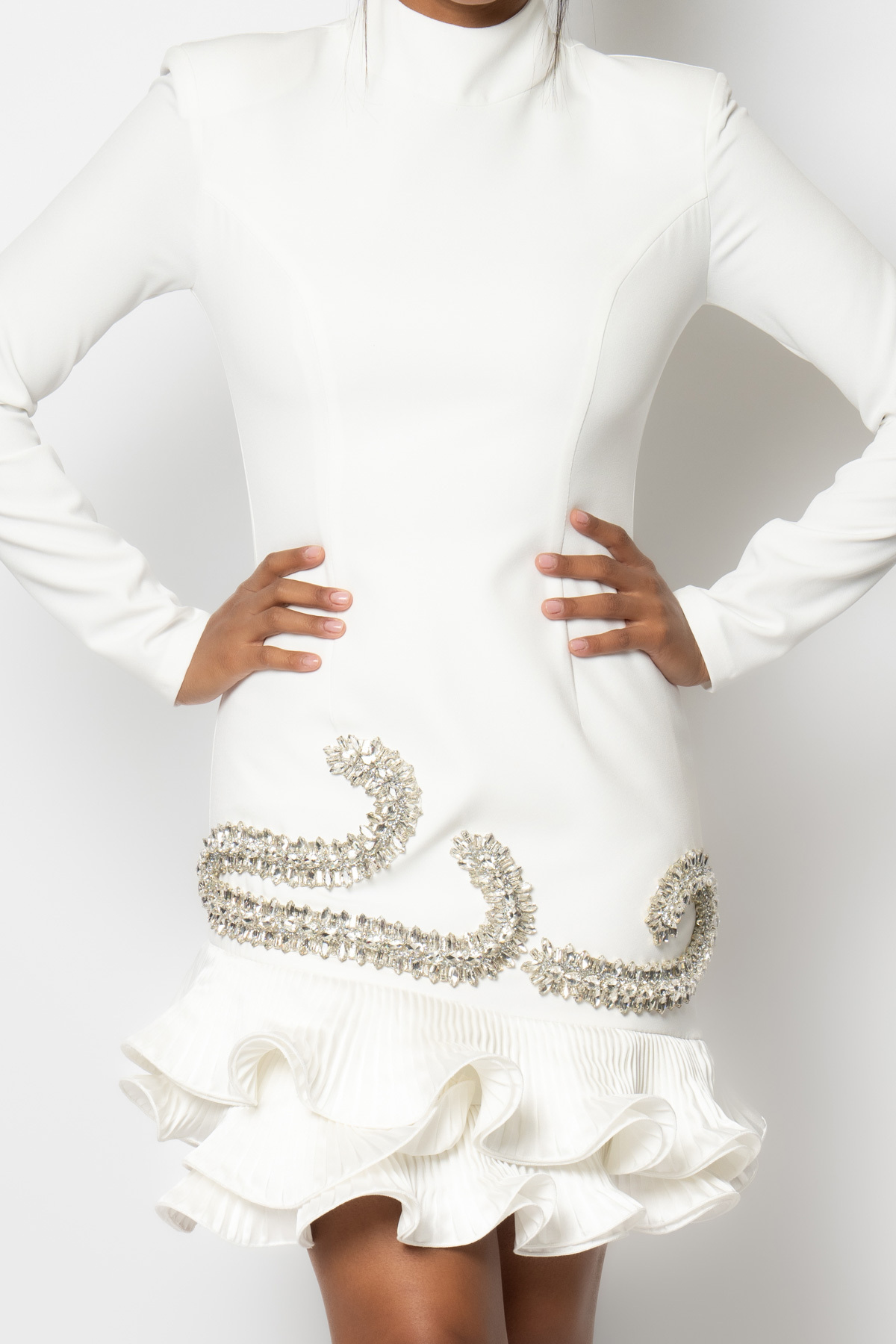Eteği fırfırlı taş işlemeli uzun kollu krep abiye elbise Eteği fırfırlı taş işlemeli uzun kollu krep abiye elbise 7318 48