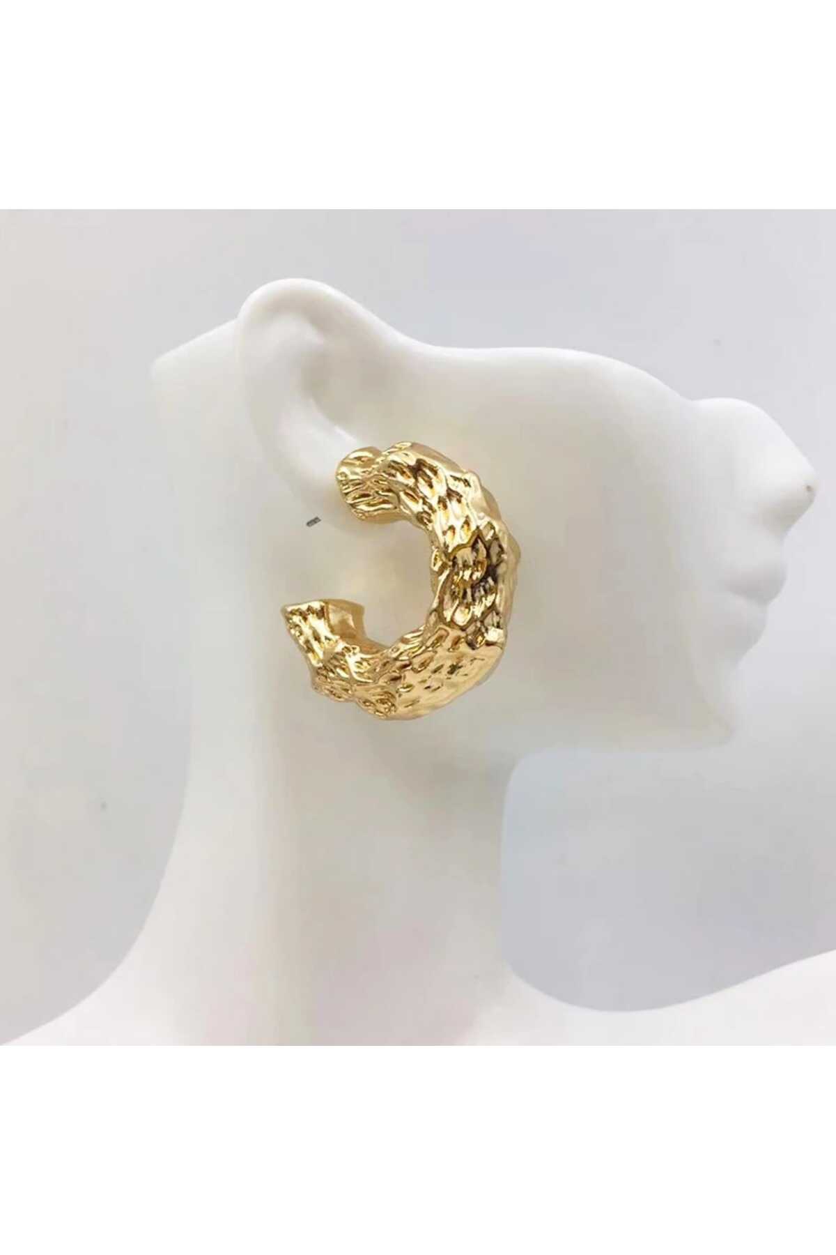 Altın Kaplama Marka Muadil Krinkle Büyük Halka Küpe Altın Kaplama Marka Muadil Krinkle Büyük Halka Küpe GD000646 تک سایز