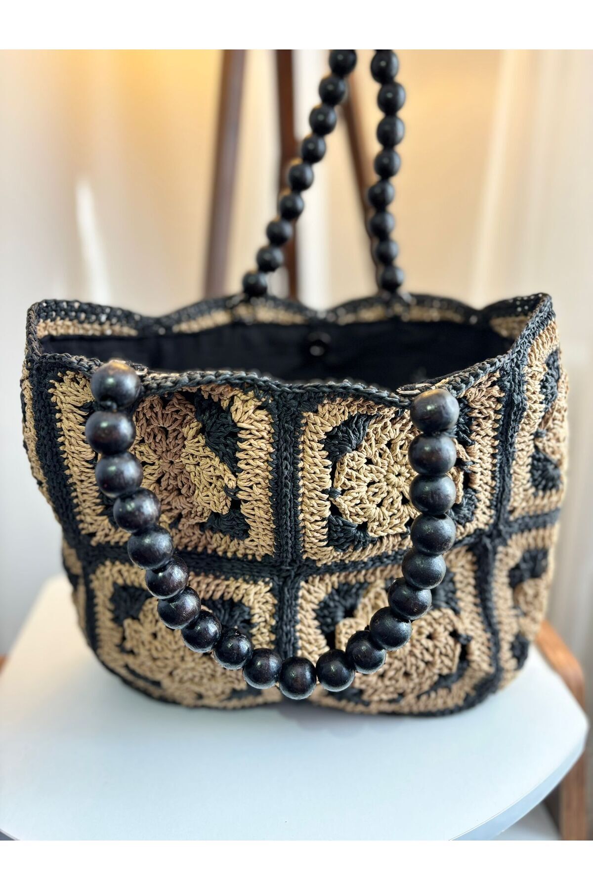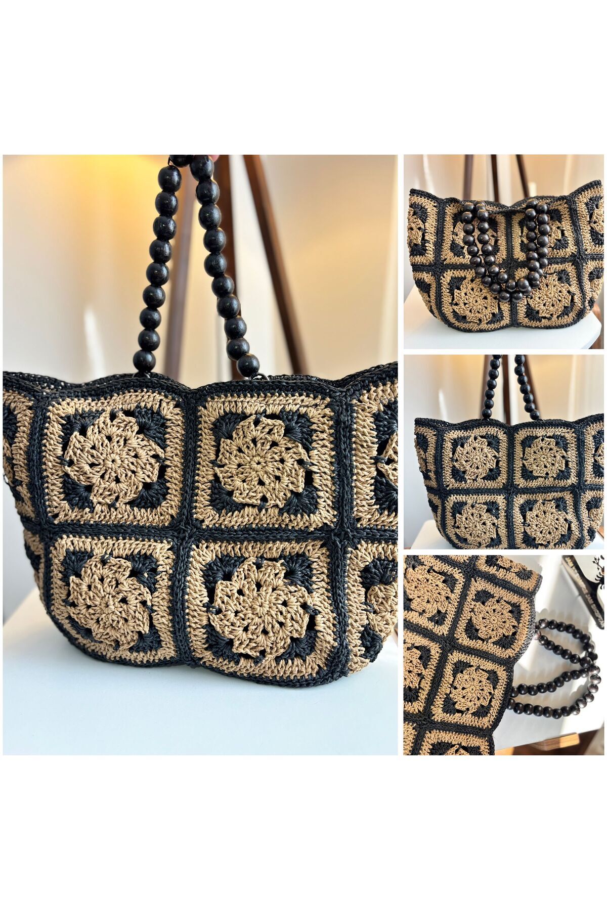 SİYAH EKRU BONCUK KULPLU MOTİFLİ ÇANTA SİYAH EKRU BONCUK KULPLU MOTİFLİ ÇANTA Standart