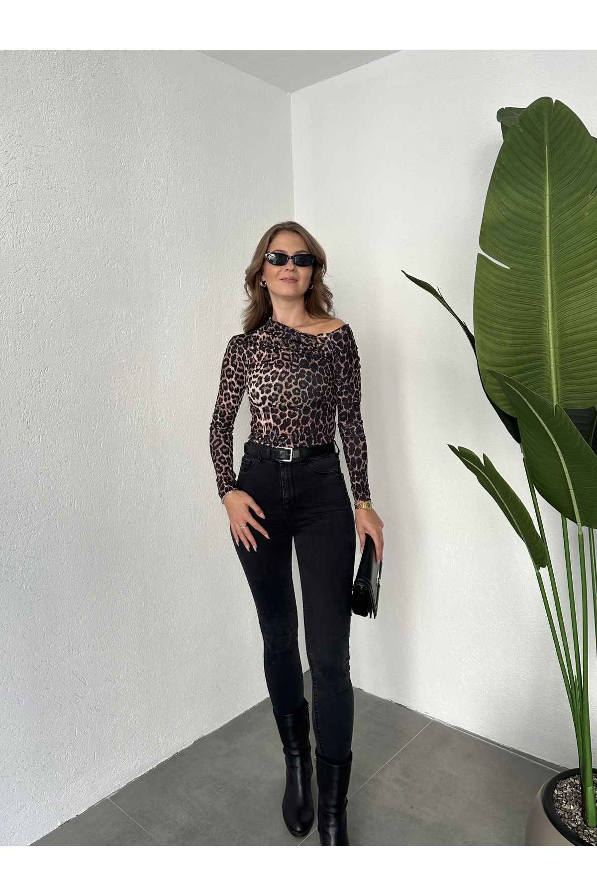 Leopar Omuz Dekolteli Candy Body Bluz Leopar Omuz Dekolteli Candy Body Bluz ASF1-B302 L