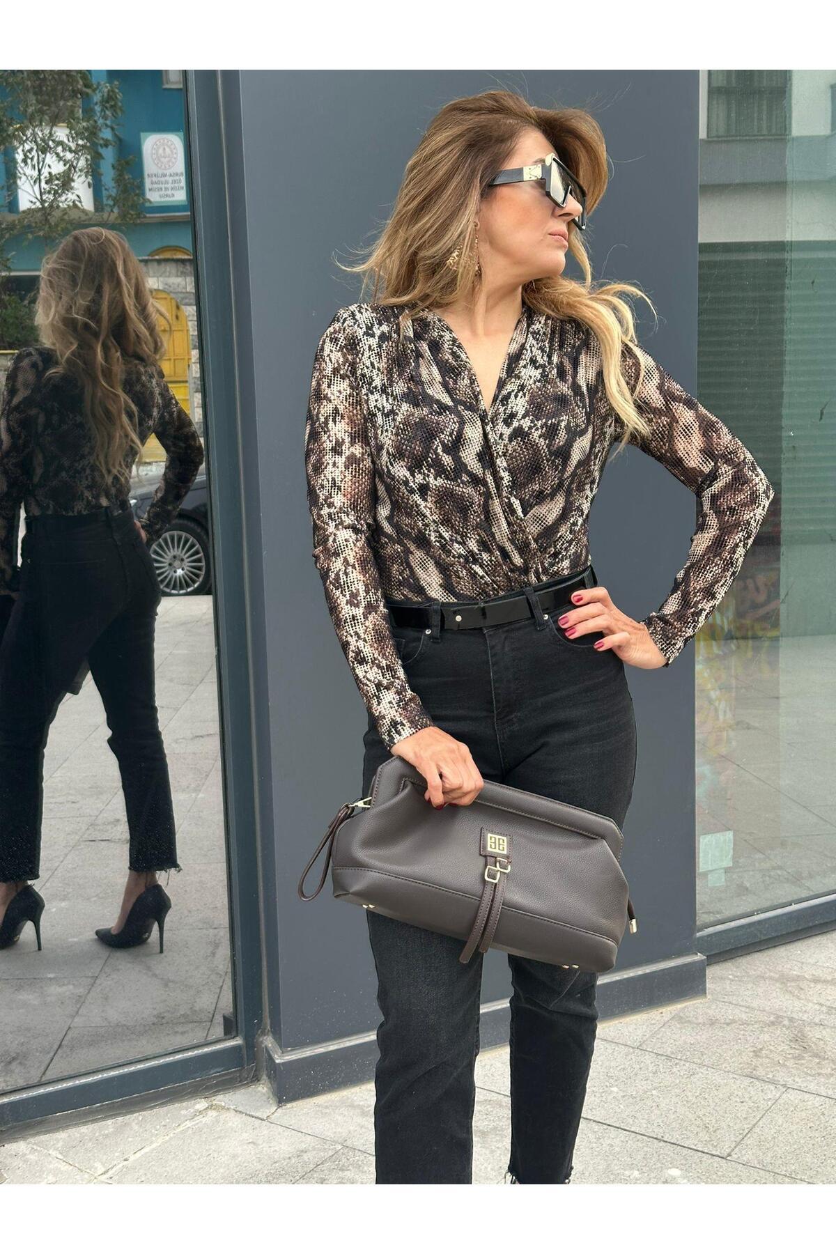 Desenli Parlak Taşlı,Kruvaze Şık Tül Bluz Desenli Parlak Taşlı,Kruvaze Şık Tül Bluz A0124K184070001 42
