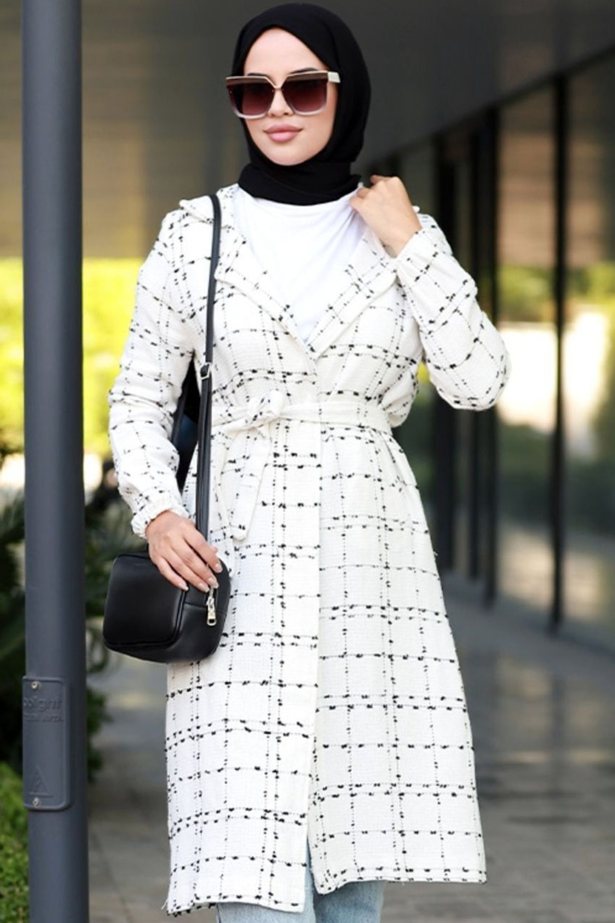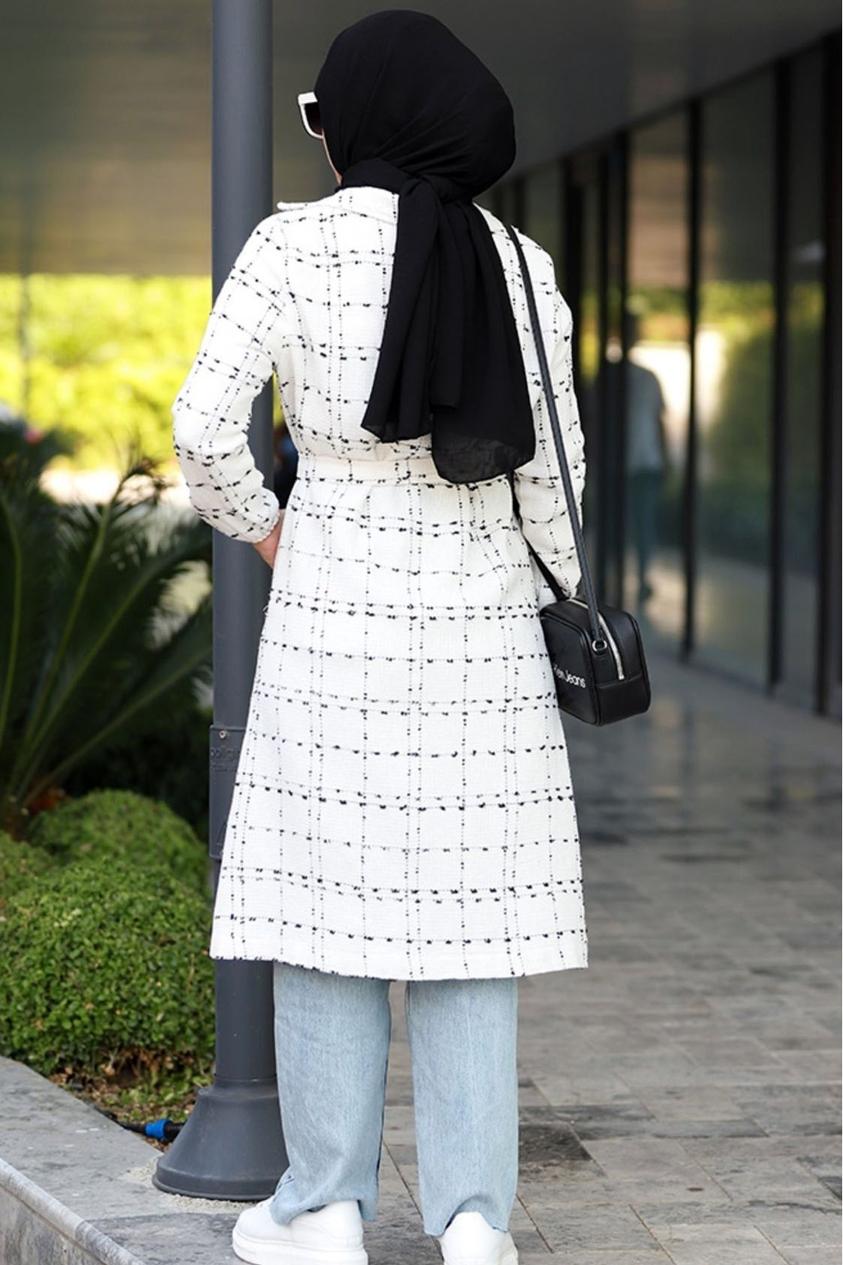 Ceket Yaka Dokulu Tüvit Kumaş Diz Altı Midi Boy Kuşaklı Şık ve Cool Günlük Rahat Tesettür Kap Kaban Ceket Yaka Dokulu Tüvit Kumaş Diz Altı Midi Boy Kuşaklı Şık ve Cool Günlük Rahat Tesettür Kap Kaban ABLG-0584 46