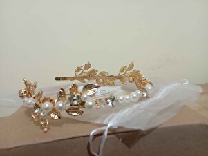 مشخصات فنی Şık El Yapımı Gold Yapraklı İncili Gelin Tacı - Saç Bandı- Lohusa Tacı - Nişan Tacı جنس مروارید رنگ متالیک Menşei CN مشخصات کلی