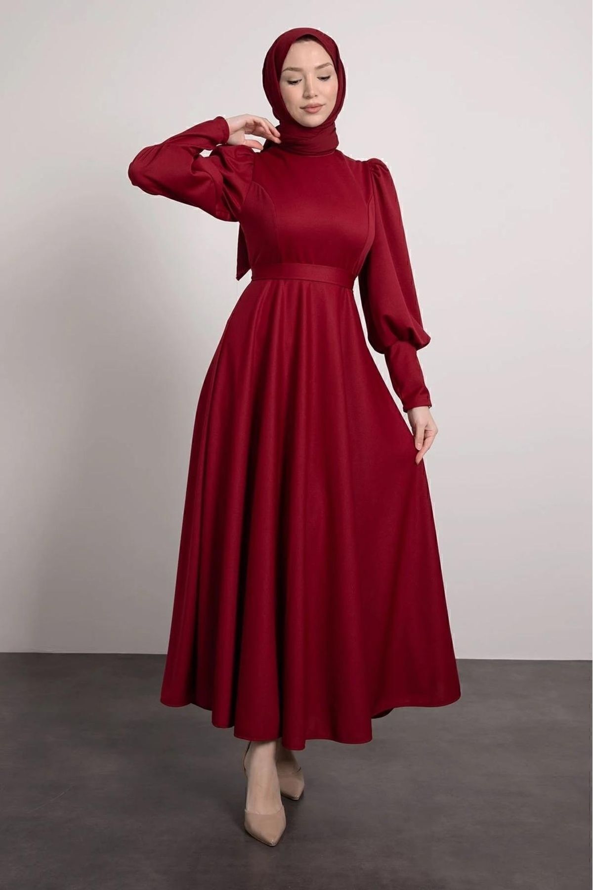 Dimitra Balon Kol Saten Elbise Kırmızı Dimitra Balon Kol Saten Elbise Kırmızı 1065 44