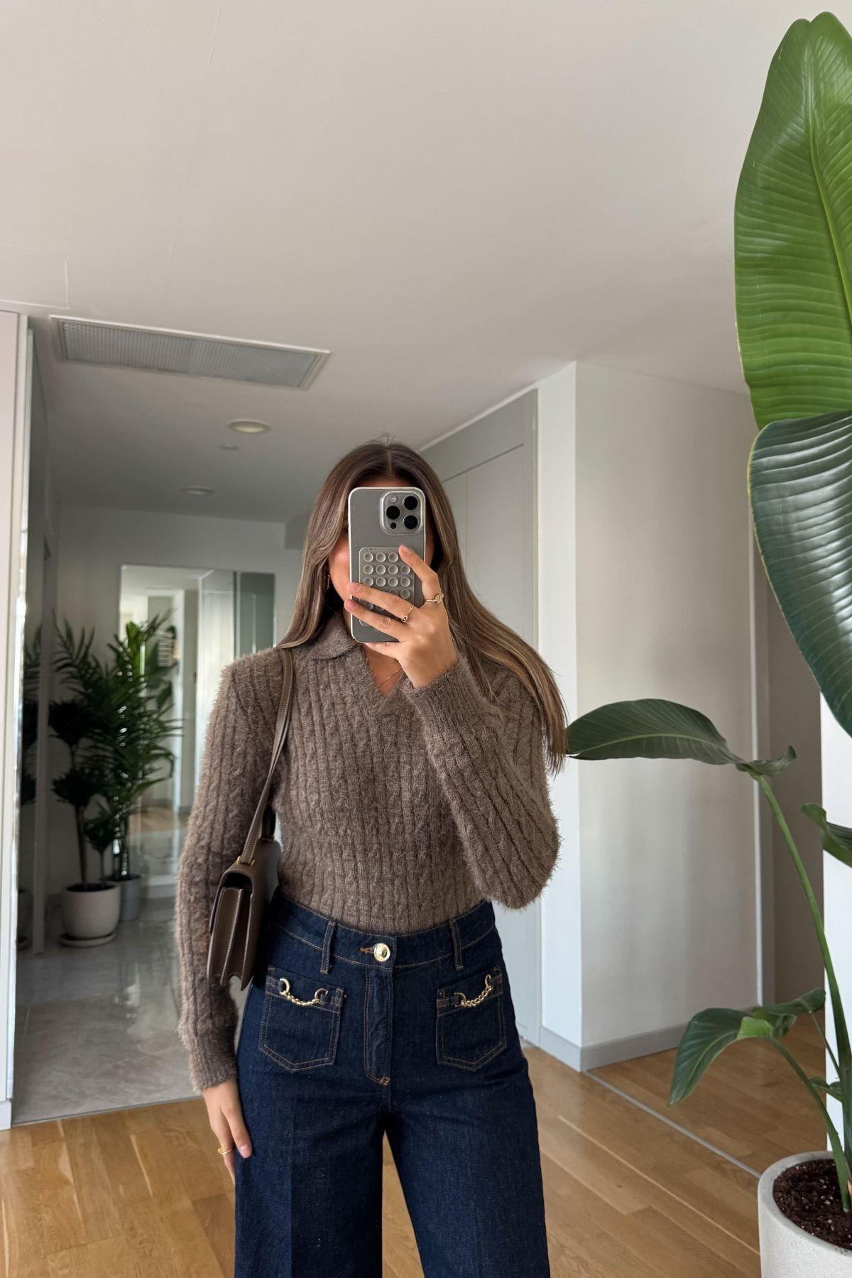 Klasik Saçlı Crop Kazak Br7004 Vizon Klasik Saçlı Crop Kazak Br7004 Vizon BR7004 Standart