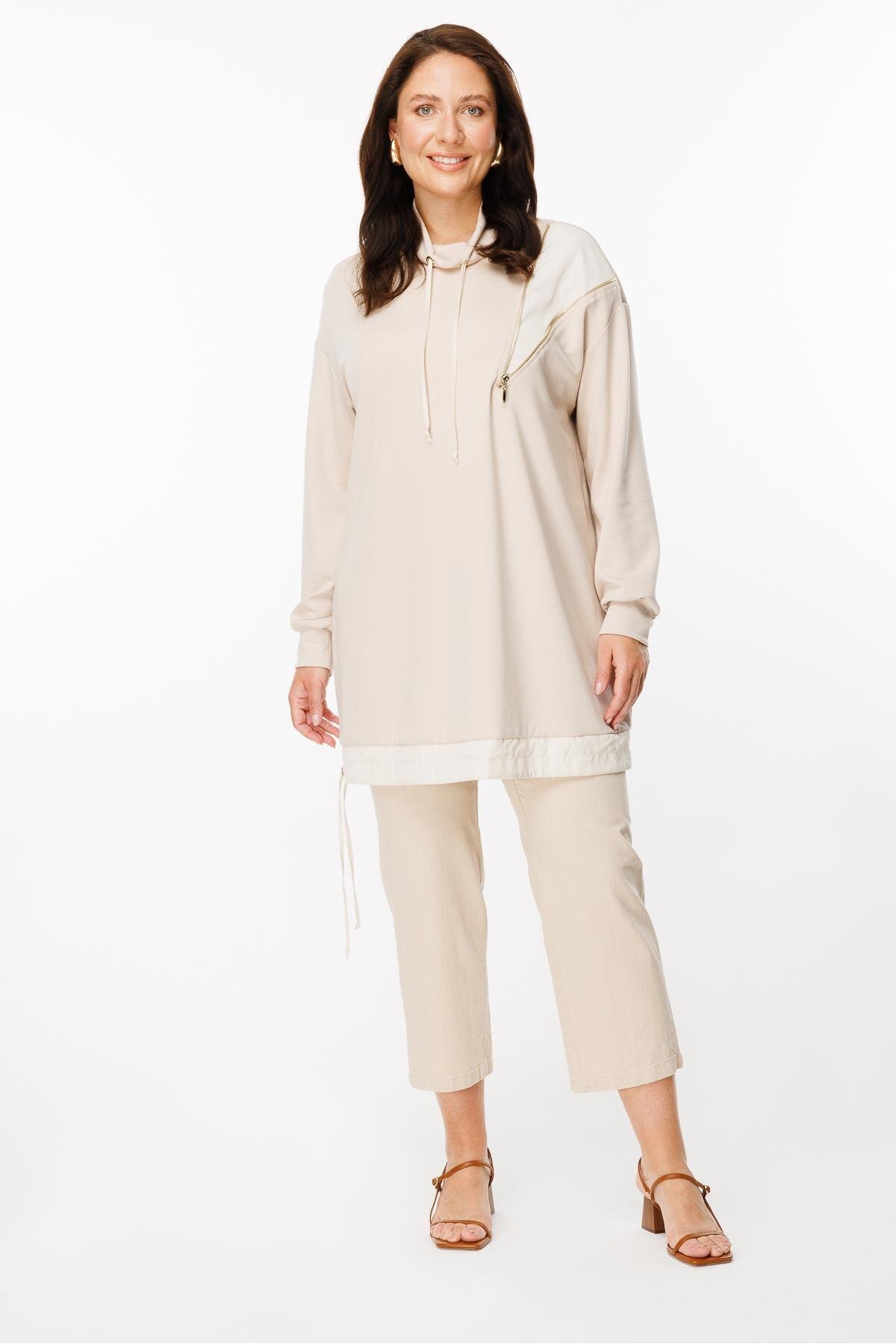 Büyük Beden Fermuar ve Ayarlanabilir İp Detaylı Tunik-BEJ Büyük Beden Fermuar ve Ayarlanabilir İp Detaylı Tunik-BEJ 4SZD81B1235 46