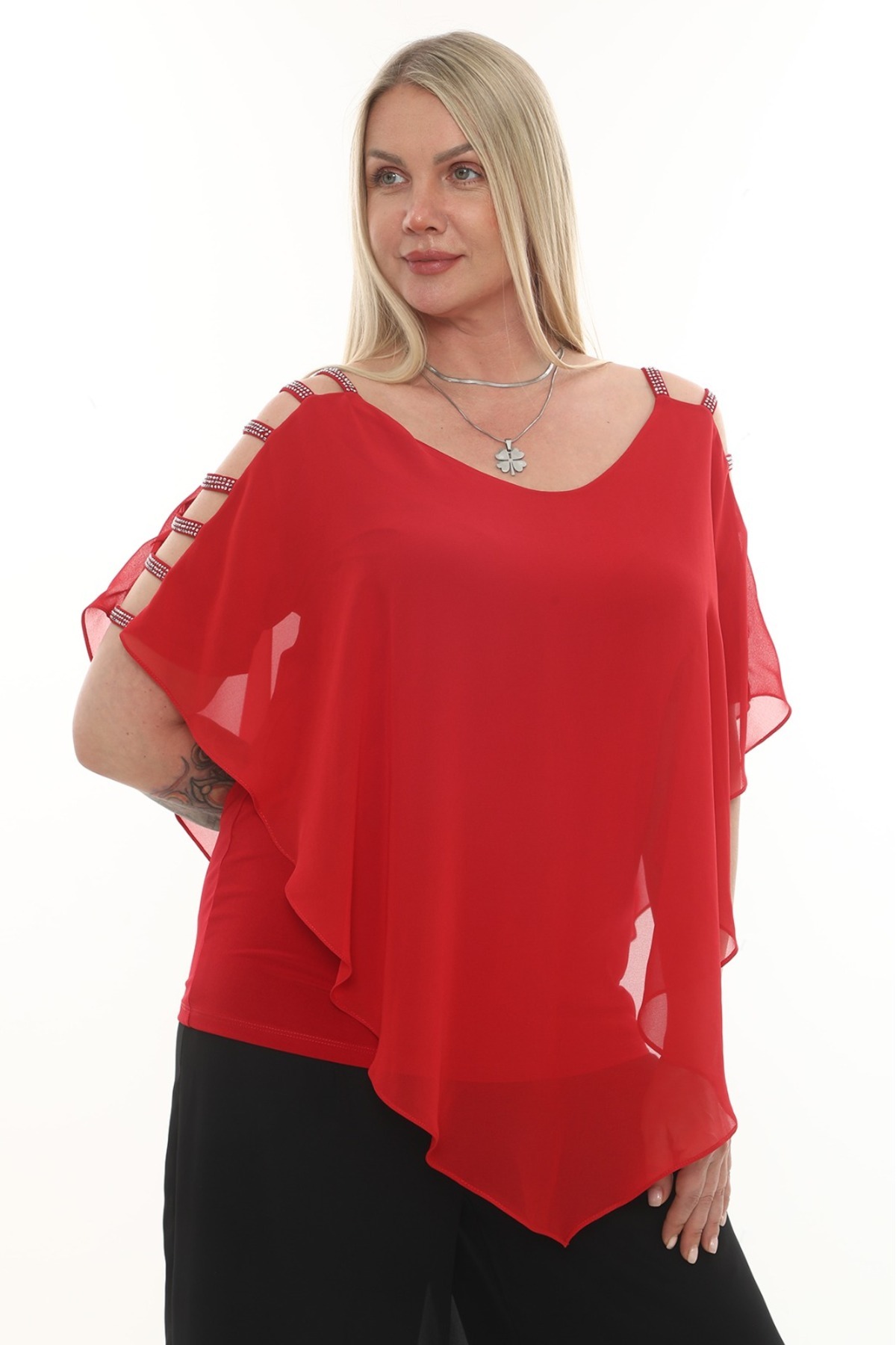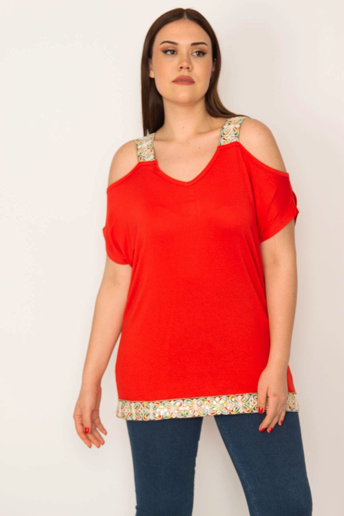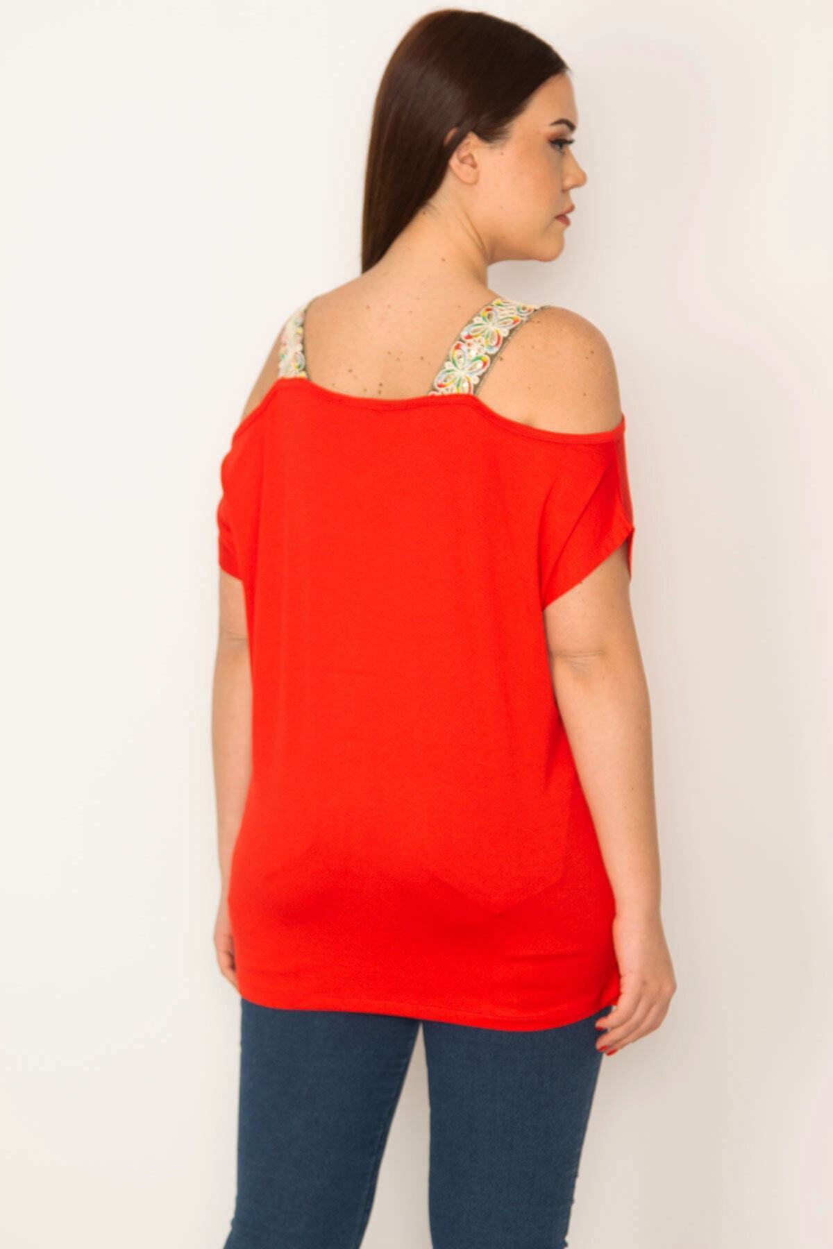 Kadın Büyük Beden Kırmızı Omuz Dekolteli Askı Ve Etek Ucu Payet Dantel Detaylı Bluz 65n22701 Kadın Büyük Beden Kırmızı Omuz Dekolteli Askı Ve Etek Ucu Payet Dantel Detaylı Bluz 65n22701 65N22701 50