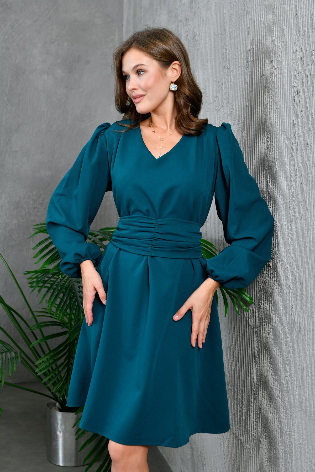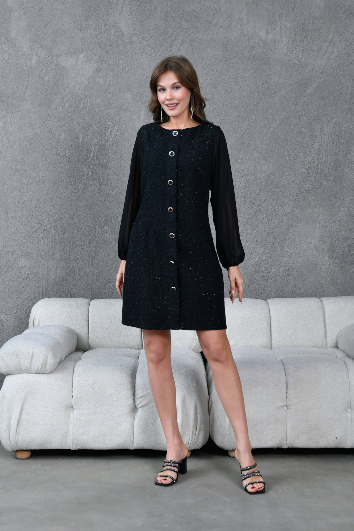 Düğme ve Sırt Detaylı Tüvit Kumaş Şifon Kollu Kadın Abiye Elbise 022 Düğme ve Sırt Detaylı Tüvit Kumaş Şifon Kollu Kadın Abiye Elbise 022 ZSH-2STP-022 42