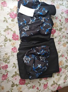 Çapa Desenli Belden Ayarlanabilir Lastikli 3lü Tesettür Mayo Mavi Çapa Desenli Belden Ayarlanabilir Lastikli 3lü Tesettür Mayo Mavi 5036 42-44