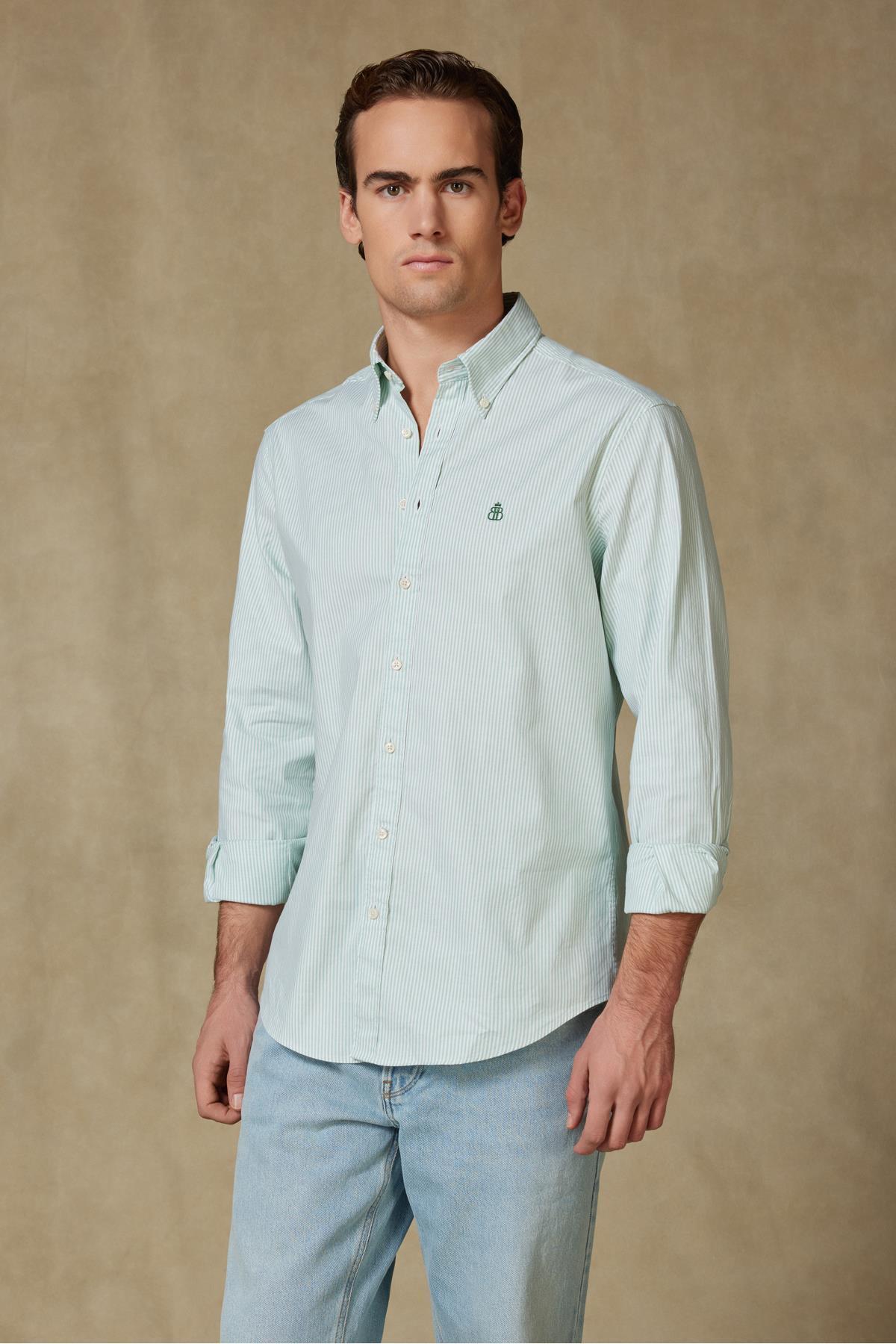 Beyaz Mavi Çizgili Albiate Düğmeli Yaka Cepli Tailor Fit Spor Oxford Gömlek Beyaz Mavi Çizgili Albiate Düğmeli Yaka Cepli Tailor Fit Spor Oxford Gömlek E0124K04000 2XL