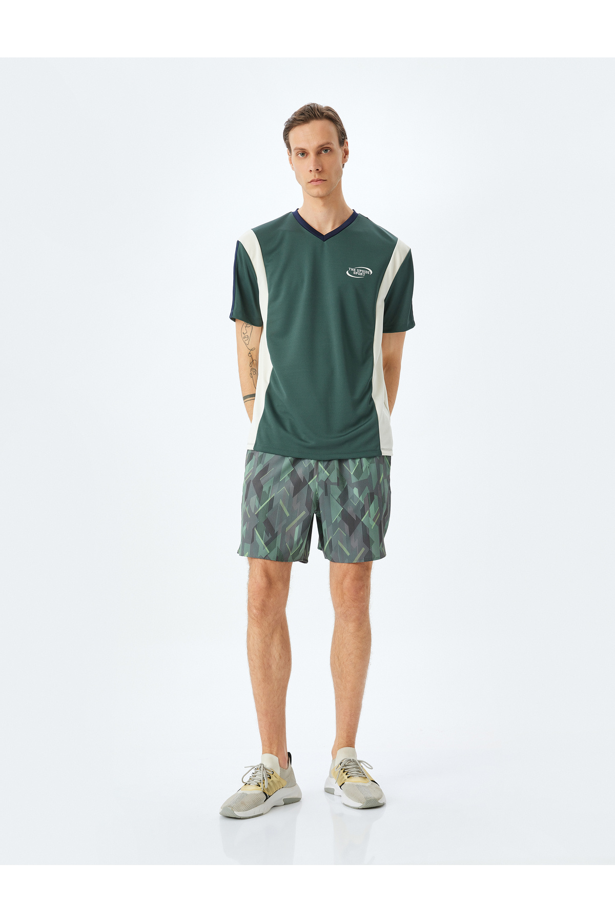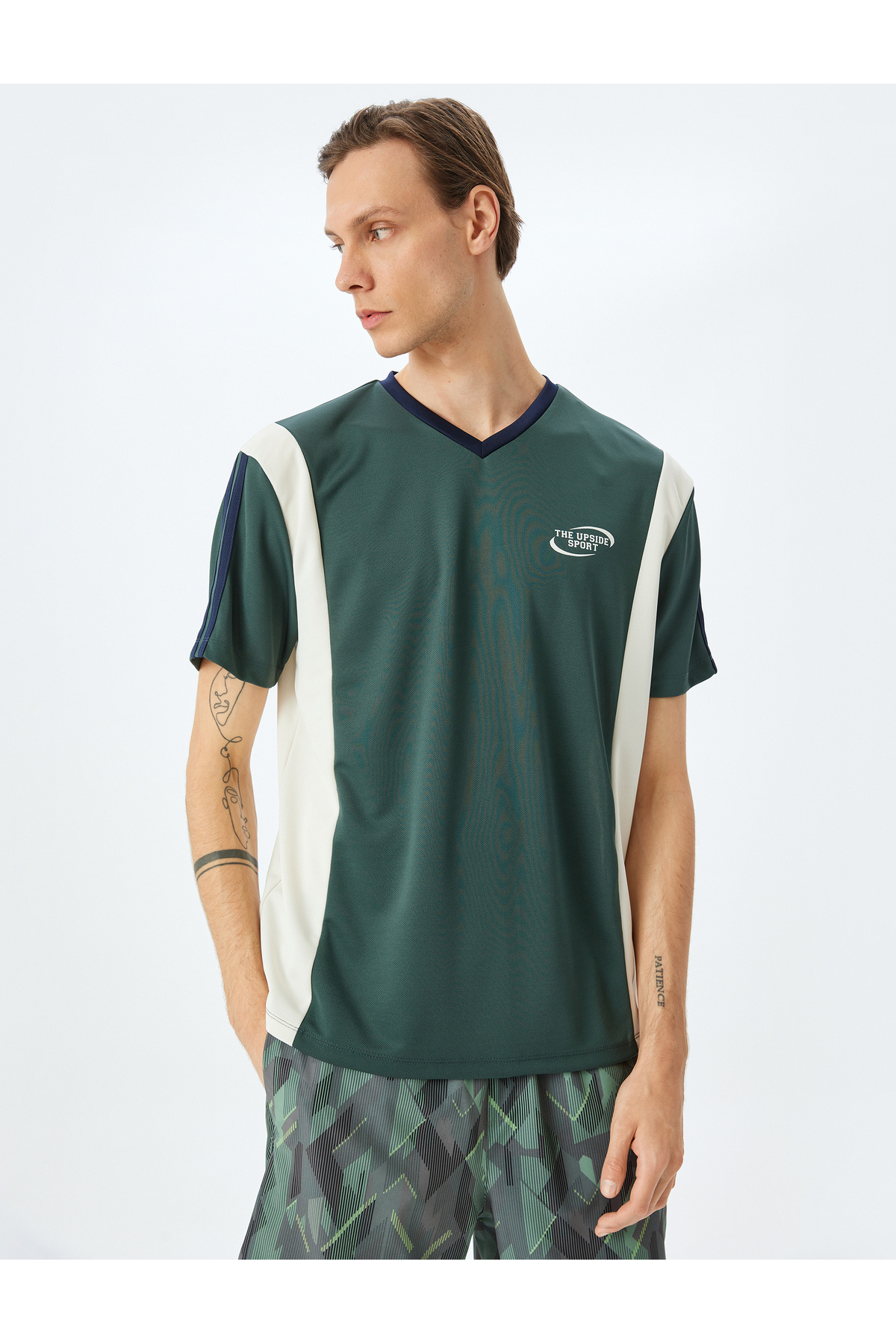 V Yaka Kısa Kollu Renk Bloklu Slogan Baskılı Oversize Spor Tişört V Yaka Kısa Kollu Renk Bloklu Slogan Baskılı Oversize Spor Tişört 5WAM10090NK XL
