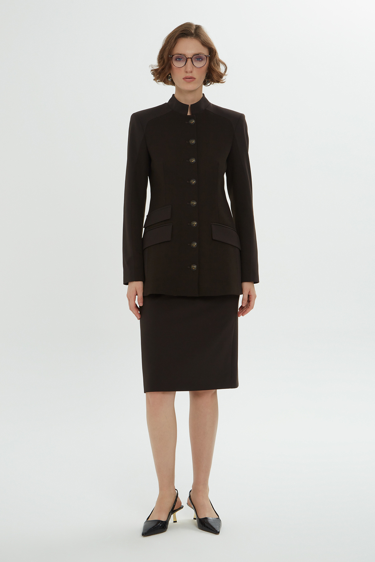 Düğme Detaylı Siyah Ceket ve Kalem Etek Takımı Düğme Detaylı Siyah Ceket ve Kalem Etek Takımı M4KMTKK333 42