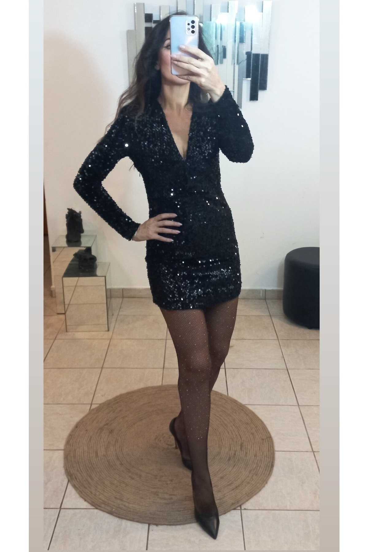 Kruvaze Yaka Pullu Kadın Elbise - Siyah Kruvaze Yaka Pullu Kadın Elbise - Siyah 3M-3361 L