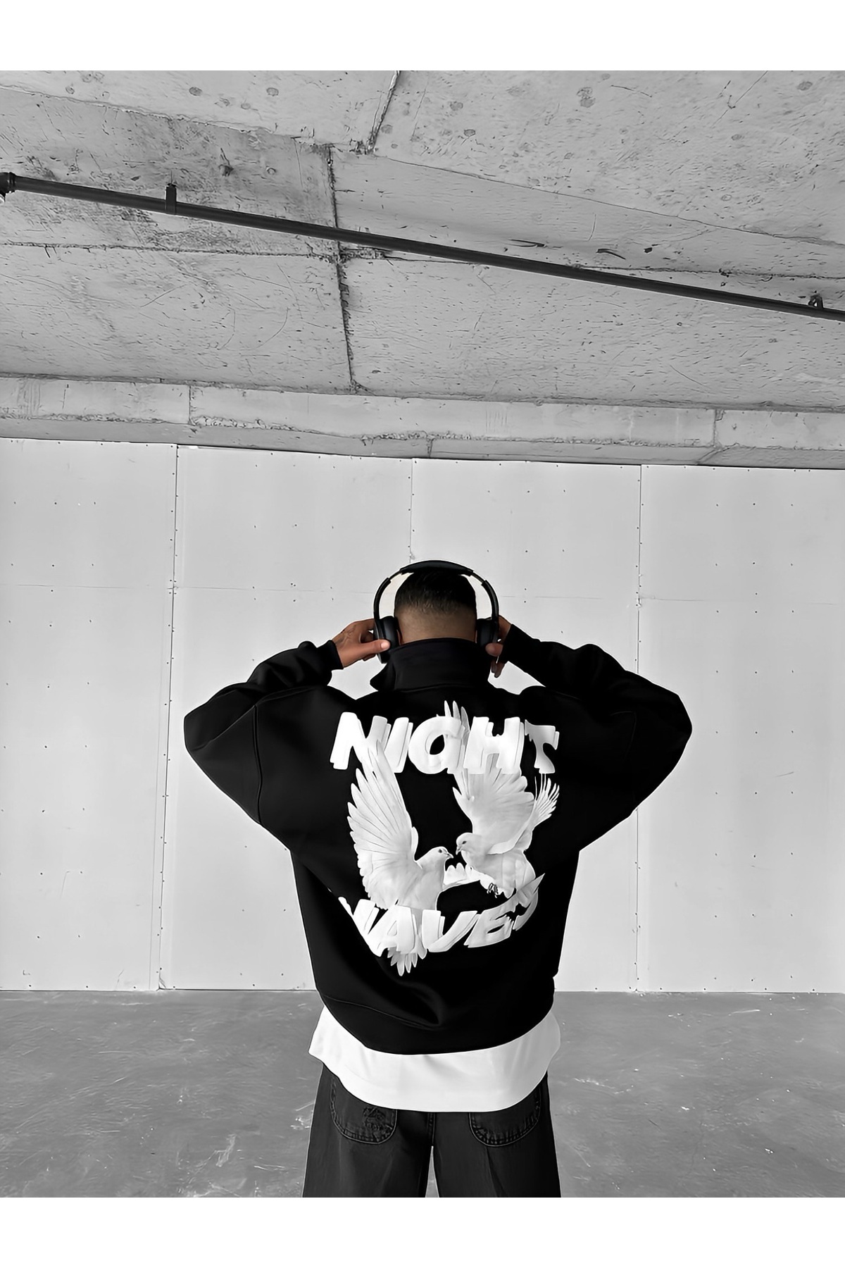 Erkek Oversize Yarım Fermuarlı Dik Yakalı Baskılı Sweatshirt Siyah Erkek Oversize Yarım Fermuarlı Dik Yakalı Baskılı Sweatshirt Siyah SWT.0084 XL