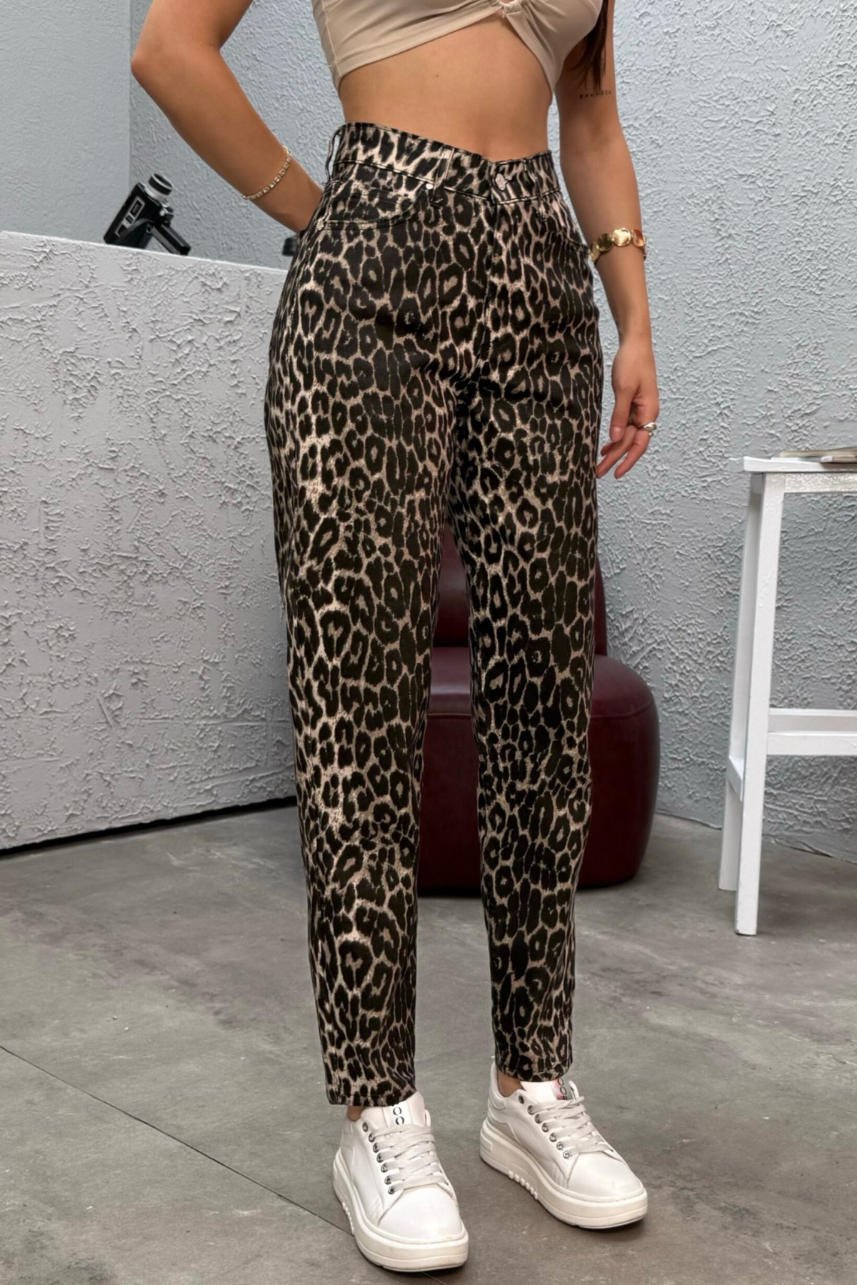 Kadın Leopar Desen Yüksek Bel Likralı Mom Jean Kadın Leopar Desen Yüksek Bel Likralı Mom Jean ALN00000300 44
