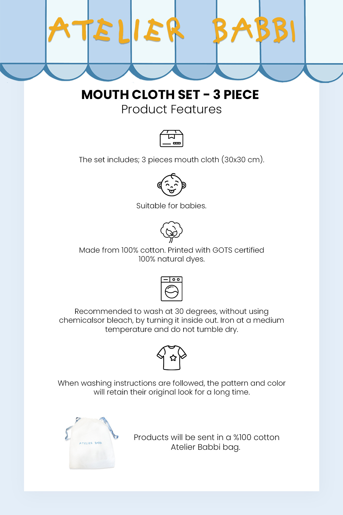 %100 Pamuk 3'LÜ AĞIZ BEZİ SETİ - TOİLE DE JOUY / MAVİ %100 Pamuk 3'LÜ AĞIZ BEZİ SETİ - TOİLE DE JOUY / MAVİ AGBS1001 تک سایز