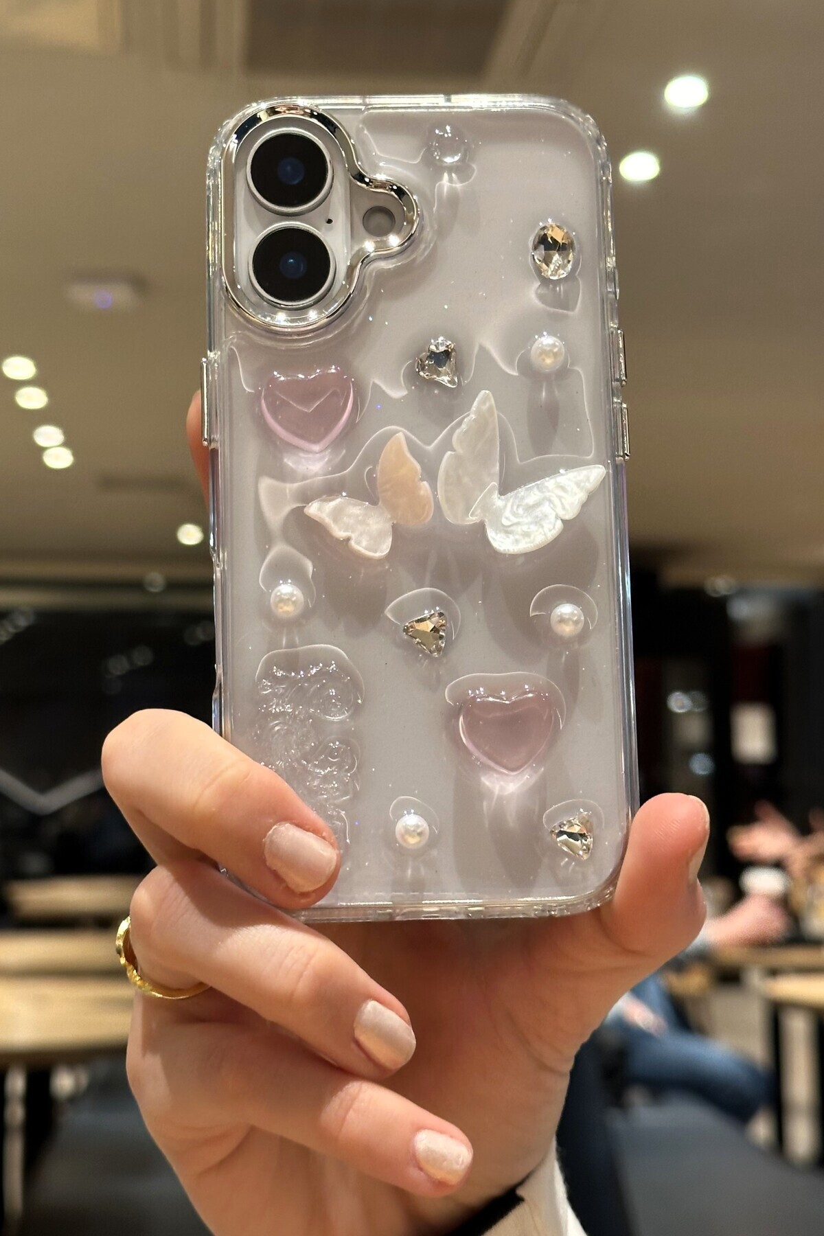 iPhone 16 Uyumlu Sedef Kelebek Kalp Kristal Taş Figürlü Şeffaf Kılıf iPhone 16 Uyumlu Sedef Kelebek Kalp Kristal Taş Figürlü Şeffaf Kılıf 1400 تک سایز