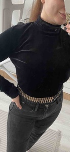 Uzun Kollu Dik Yaka Sallantılı Taş Detaylı Crop Kadife Bluz Uzun Kollu Dik Yaka Sallantılı Taş Detaylı Crop Kadife Bluz 5WAK80235EK XL