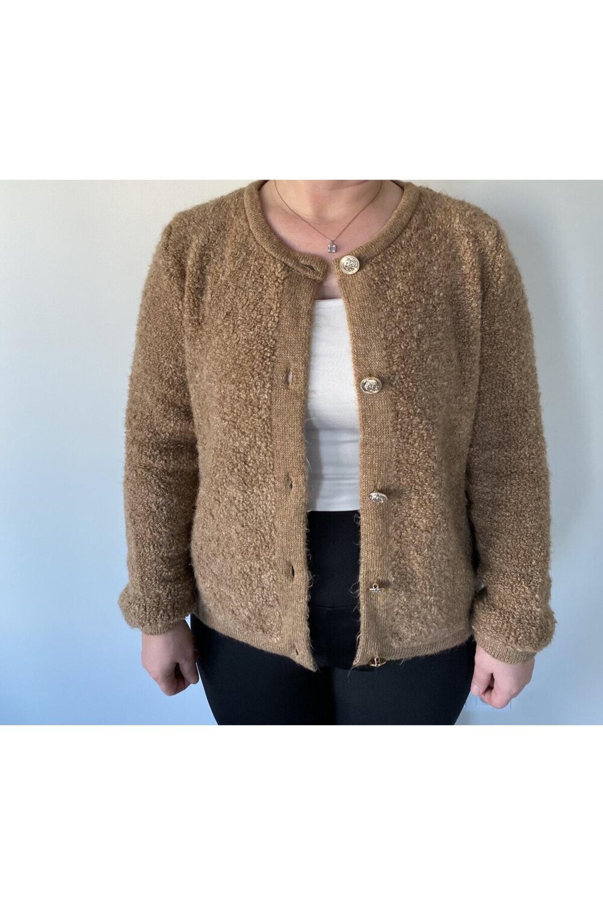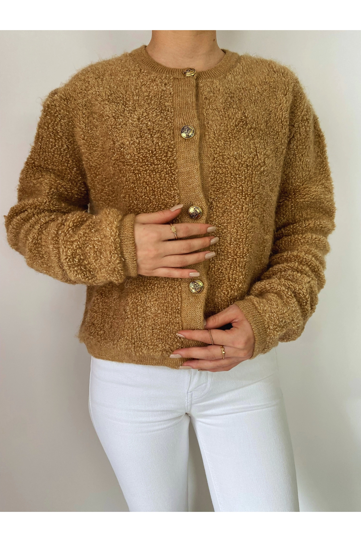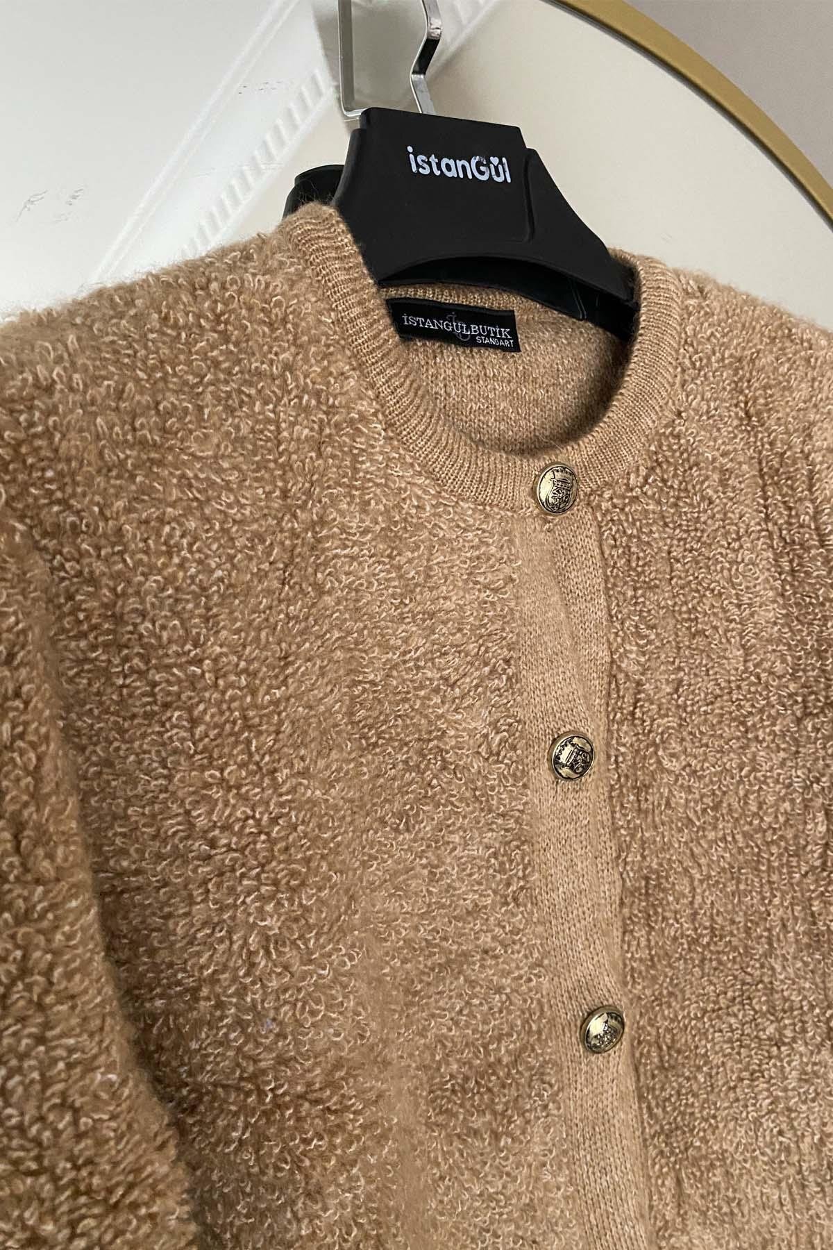 Gold Metal Düğme Detay Havlu Triko Hırka Gold Metal Düğme Detay Havlu Triko Hırka 24K3919 Standart