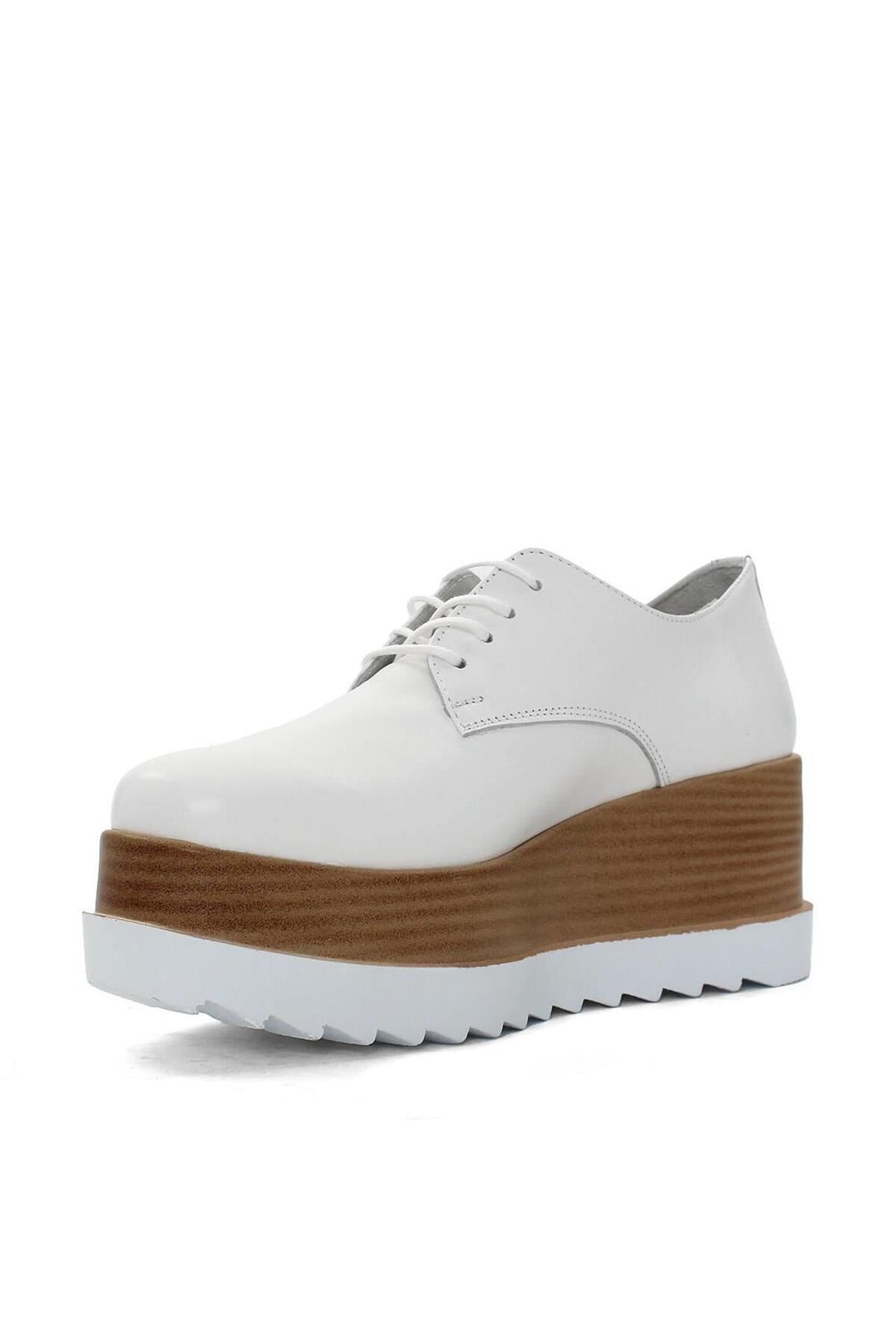 Kadın Beyaz Bağcıklı Dolgu Topuklu Deri Ayakkabı Kadın Beyaz Bağcıklı Dolgu Topuklu Deri Ayakkabı 115 20618 40
