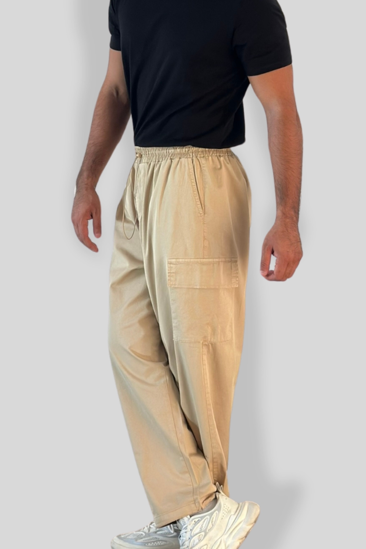 Erkek Yüksek Bel Kargo Cepli Paçası ve Beli Lastikli Oversize Siyah Baggy Pantolon Erkek Yüksek Bel Kargo Cepli Paçası ve Beli Lastikli Oversize Siyah Baggy Pantolon STC-0009 XL